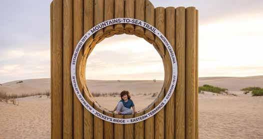 ABOUT THE COVER: Twins Nyx and Moira Furr settle in for a sunset at Jockey’s Ridge’s newly unveiled Mountains-to-Sea Trail Eastern Terminus Monument. Photo by Cory Godwin.