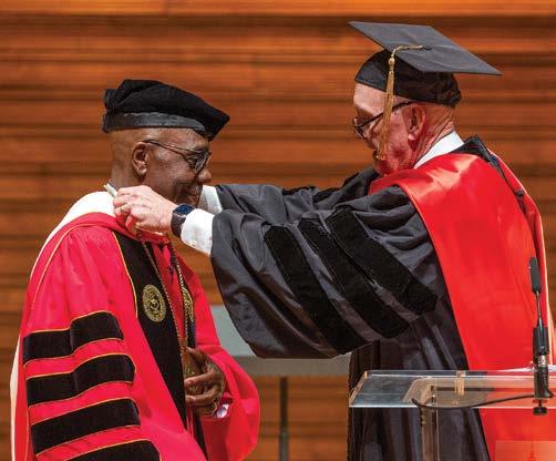 Scott Wehrli ’91, mayor of the City of Naperville, spoke on behalf of the Naperville community. “I am honored to congratulate my friend, Dr. Gòkè-Paríolá, on his investiture as North Central College’s 12th president,” he said. “Just as Naperville is on the verge of the future, today we celebrate North Central entering its next chapter. Naperville and North Central move best when we move together, and I’m confident that our shared story will continue to grow under President Gòkè-Paríolá’s leadership.”