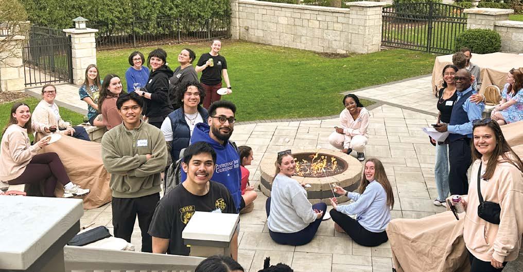 Megan Tai ’27, a Shimer Great Books major, was one of eight students who made the trip. The North Central delegation attended the ribbon-cutting and met Shimer College alumni Ed Juracek S’70, Alan Rosenberg S’72, John Montes S’75, April Stosur S’77, and Martin Manning S’78. The group enjoyed lunch at Charlie’s II, an establishment that once was called “Poffy’s” — a popular local hangout where Shimer students would gather.