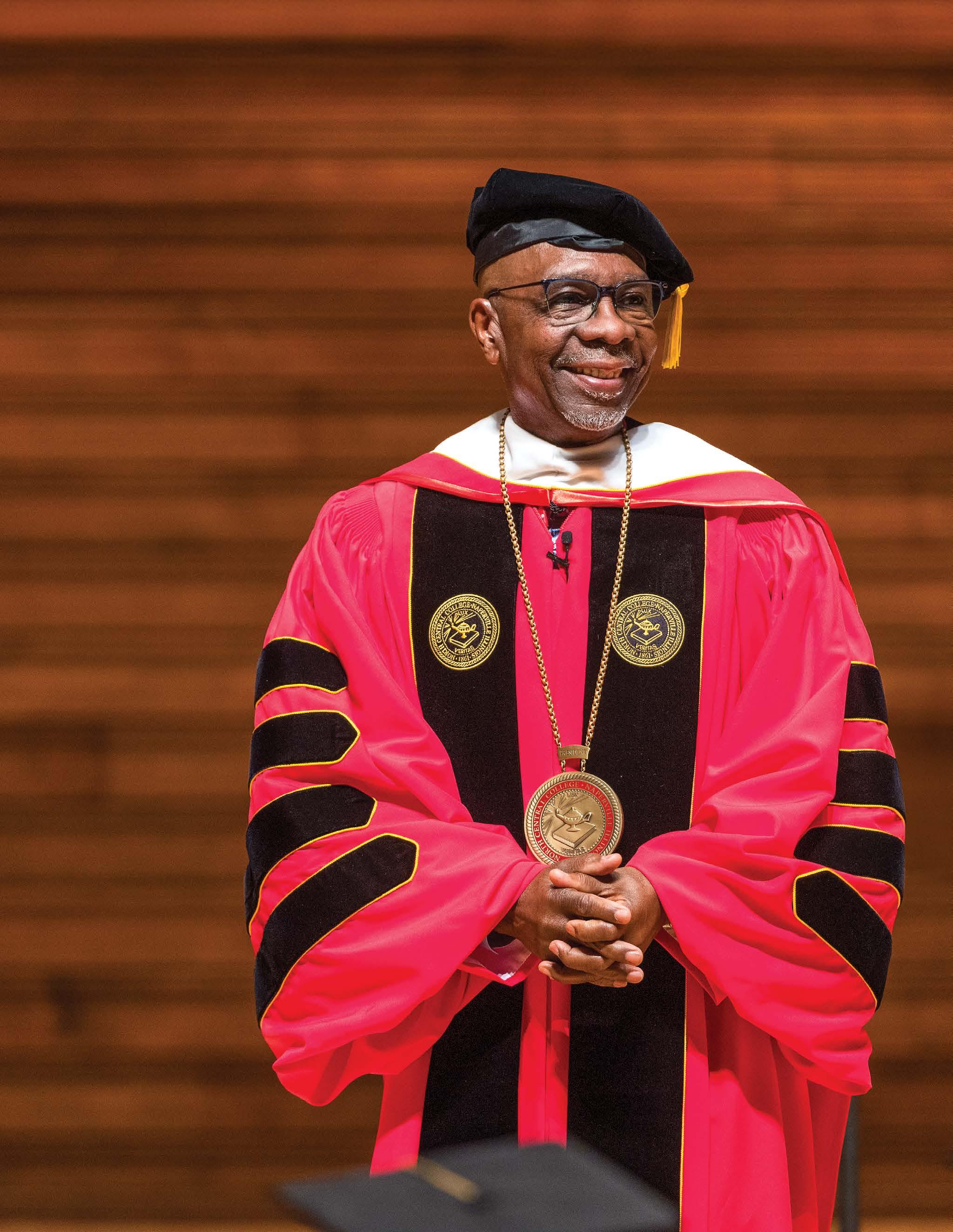 Scott Wehrli ’91, mayor of the City of Naperville, spoke on behalf of the Naperville community. “I am honored to congratulate my friend, Dr. Gòkè-Paríolá, on his investiture as North Central College’s 12th president,” he said. “Just as Naperville is on the verge of the future, today we celebrate North Central entering its next chapter. Naperville and North Central move best when we move together, and I’m confident that our shared story will continue to grow under President Gòkè-Paríolá’s leadership.”