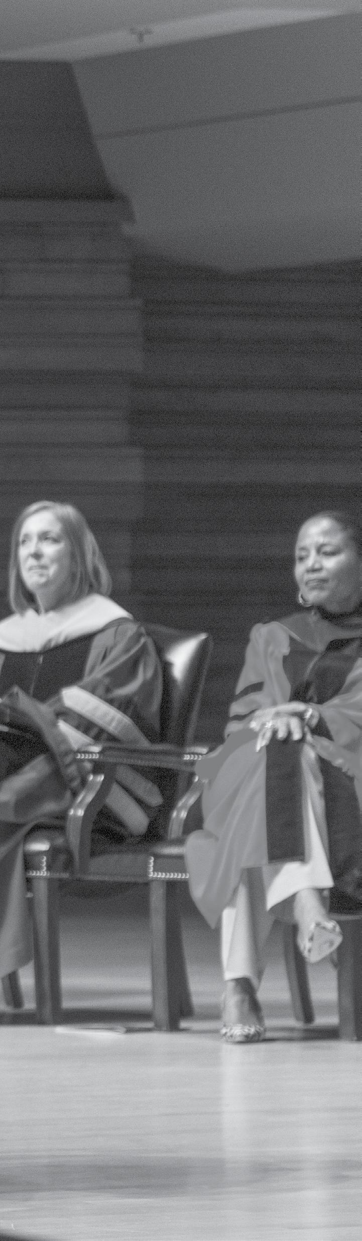 Dr. Donnavieve Smith, associate professor of marketing and Grantman Professor in Business and Economics, introduced the formal installation of the president by providing historical context, including describing the symbols of the office.