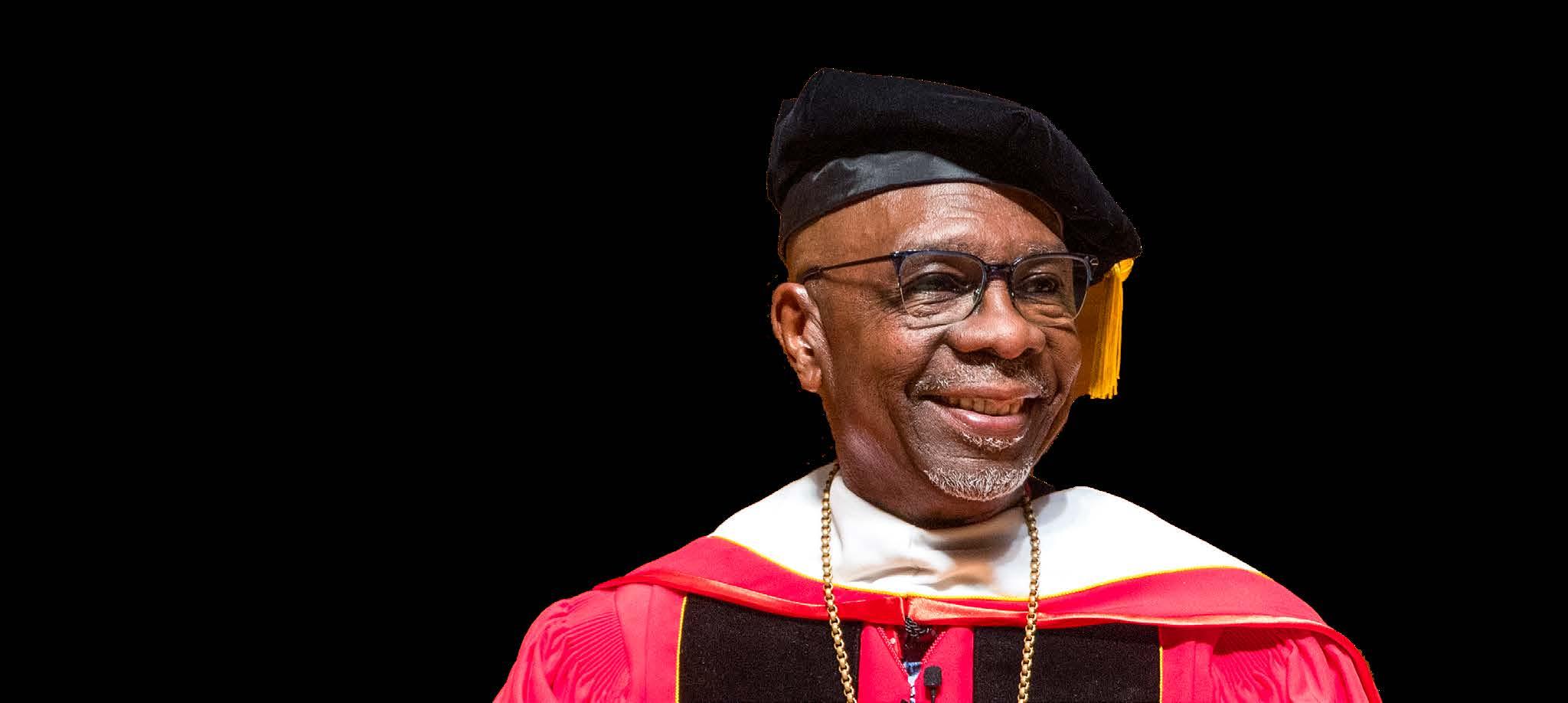 Geraty later returned to the podium with an announcement that the College’s senior leadership team contributed a seed gift to the newly named President Abiódún Gòkè-Paríolá Student Persistence Fund. Moving forward, it will be a fundraising priority to build the fund to ensure students can continue their education, earn their undergraduate degree, and walk across the stage at Commencement.