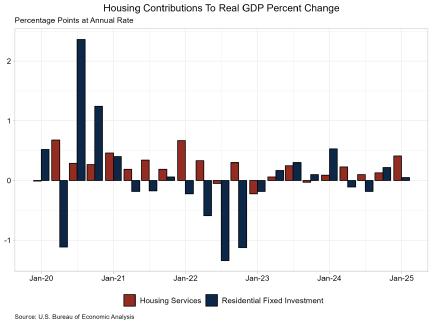 Housing’s share of the economy grew to 16.4% in the first quarter of 2025, according to the advance estimate of GDP produced by the Bureau of Economic Analysis. This is the highest reading since the third quarter of 2022 and is up 0.2 percentage points from the fourth quarter of 2024.