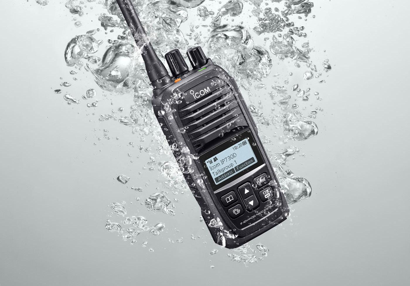 IP67 och MIL-STD-810 IC-IP503H är byggd för att tåla 1 meters vattendjup i 30 minuter och är dammtätad enligt IP67-specifikationerna. Radion klarar också MIL-STD-810-specifikationerna.