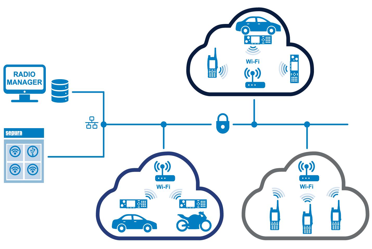Forenkler tilgangskontroll, sporing av radioer som inngår i et basseng, og muliggjør integrering med back-end-systemer.