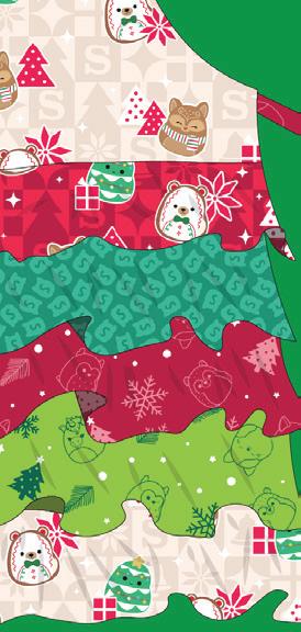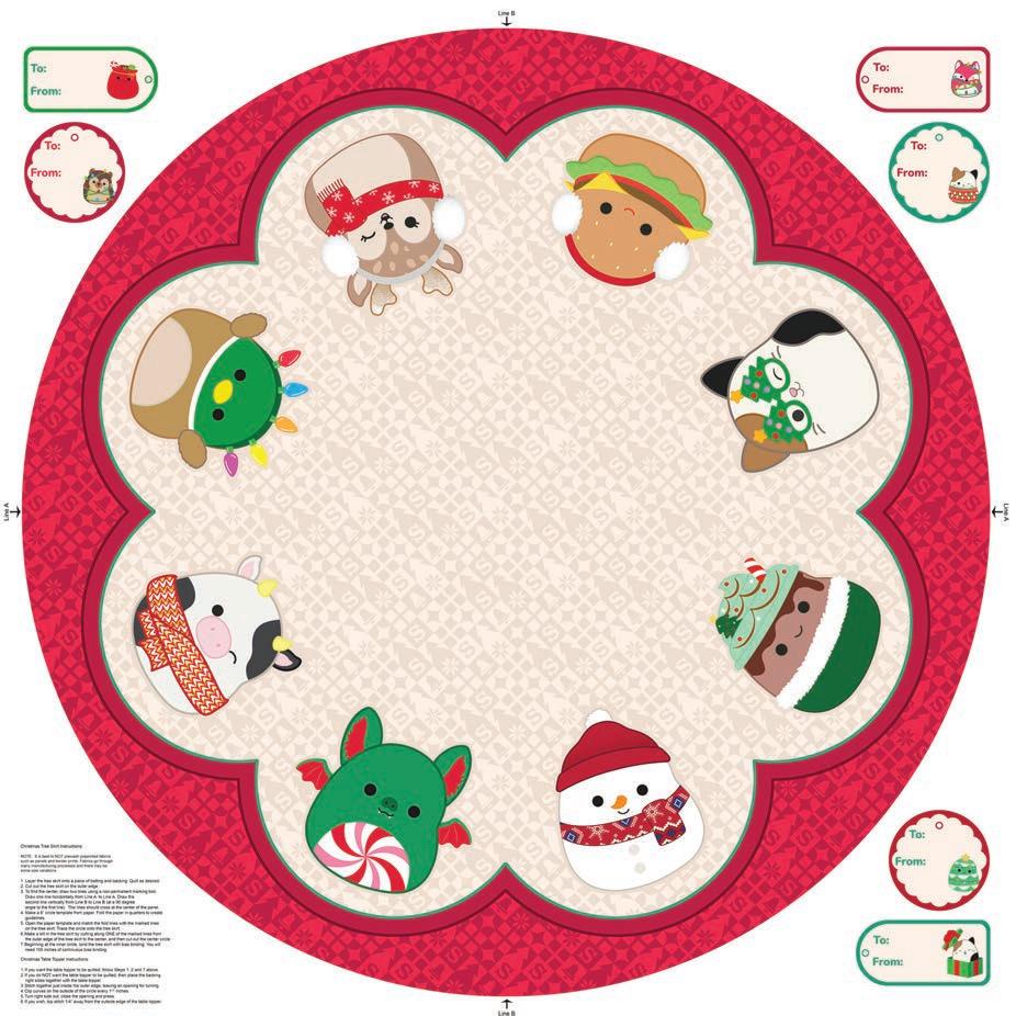 TREE SKIRT KIT INCLUDES: 43” × 43” PANEL, BACKING & BINDING FABRIC