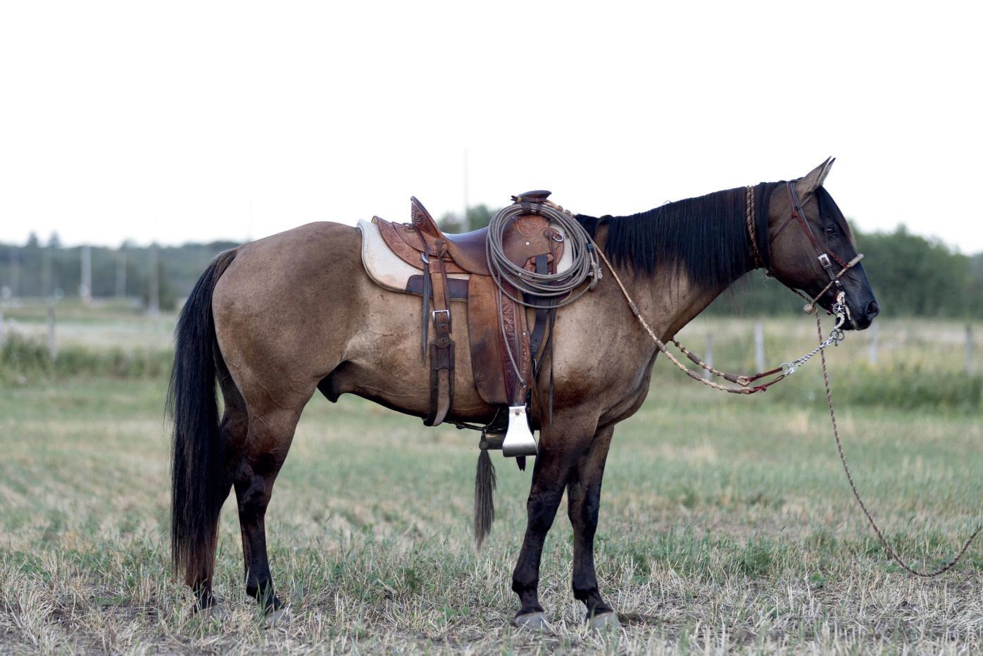 Incredibly well bred 5 year old AQHA mare with a pedigree not often offered for sale in Canada. Shield is a granddaughter of Playgun and Metallic Cat and rides like you would expect her to. Purchased from Cara Brewer in Jay Oklahoma where she started her career as a cutter. We use her on the ranch daily to check, sort, pair out, drag calves etc and she is super handy and quiet at it all. Has competed in ranch rodeos and most recently in Canada's toughest Ranch Horse Competition in Medicine Hat Alberta. Shield could easily be shown by a non-pro, take her to the roping pen and build yourself an amazing breakaway or heel horse or take advantage of cow sense as a penner or sorter. Only reason she is for sale is that she is too fancy to end her riding career and breed her so we will let her go but would love the first option to buy her back when she is ready to become a broodmare. Shield is available to try at the Griffith Ranch near Gibbons Ab or call 780-934-6110 with any questions. Stands 14.2. Up to date on shots, teeth, feet, coggins.
