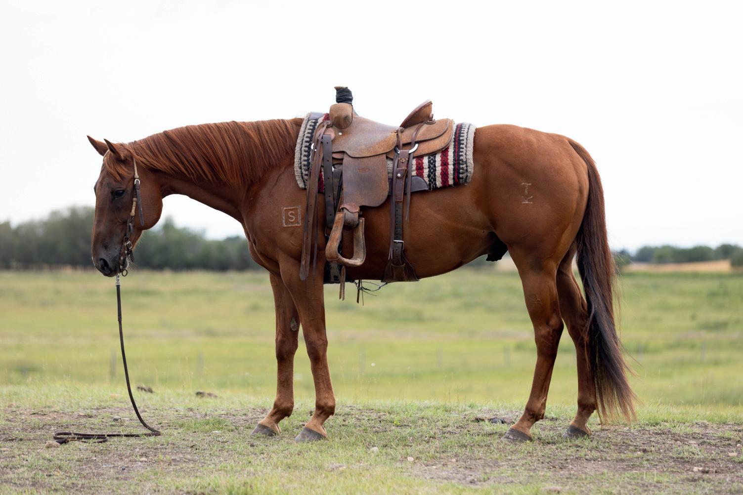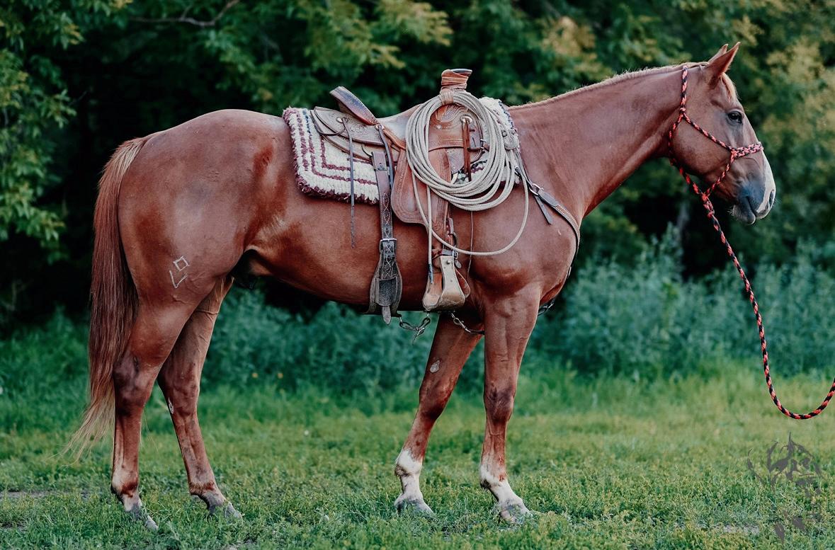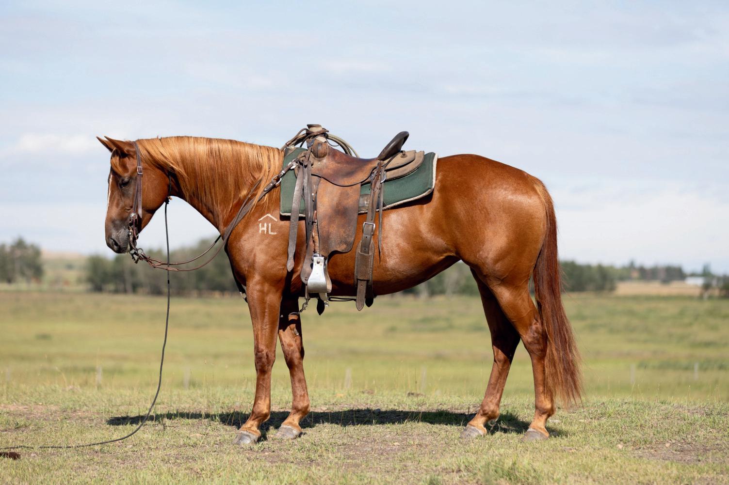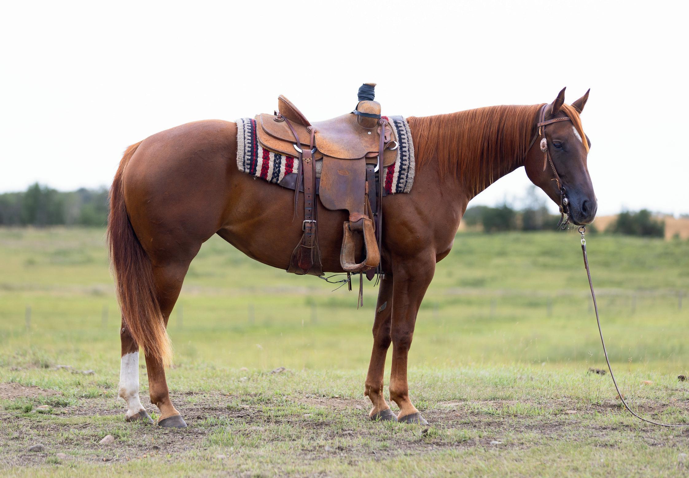 "Red" is a strong, quiet, flashy sorrel gelding that will make an excellent addition to anyone's herd. At 7 years old and 15hh, Red is ready to go to work. Whether you need him as your next go to ranch. pasture, branding, arena or trail riding horse, Red will be your main mount. Red is sired by Truders Skip A Bar and is out of HOH Cotta Get Me One. Red is strong, straight legged and good footed. He requires no special maintenance and has always been sound. He is an easy keeping horse, both in summer and winter. He is up to date on vaccines (Vetera gold) and has had his teeth floated this summer. As a ranch horse, Red has been used for moving and sorting cows. He has been used in the pasture to rope and doctor cows and calves and has been hauled to brandings. One of Red's best qualities is his attitude. He has an excellent disposition and wants to please. He is casy to catch and will meet you at the gate. He is confident when riding out alone or with other horses and will go in any direction you point him in. He does well with time off and inconsistent riding and is the same horse that you turned out in the pasture months ago. He is comfortable around kids, dogs, vehicles and equipment. Rad is our go to trustworthy horse when riding with or leading our 2 year old son.Please contact Clayton Loewen (306) 260-2853 for additional information. We will be sad to see Red go but are looking forward to seeing him excel with a new rider.