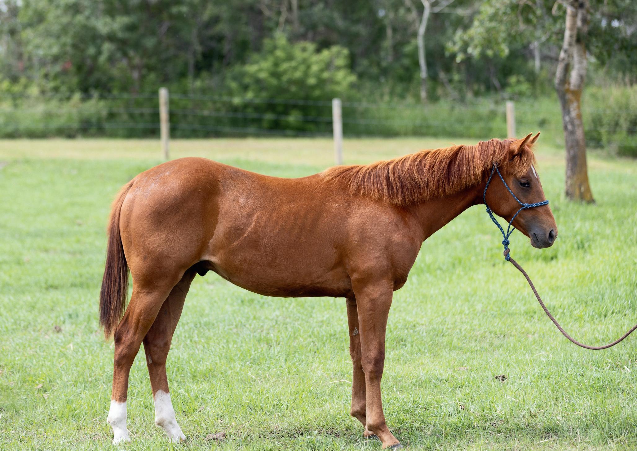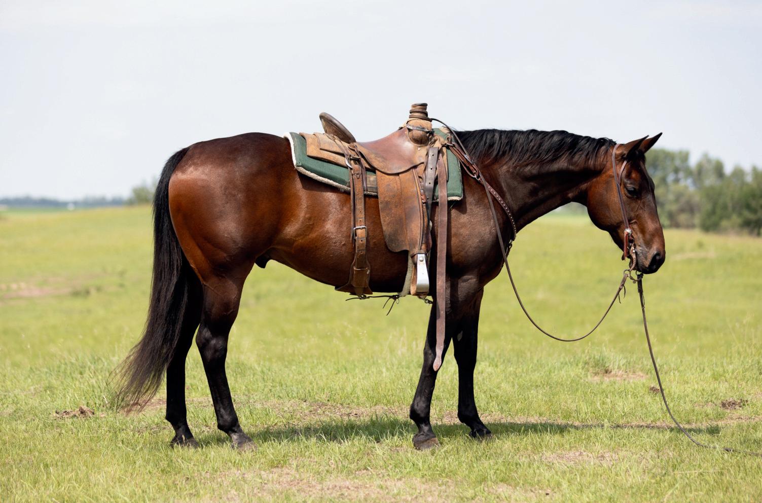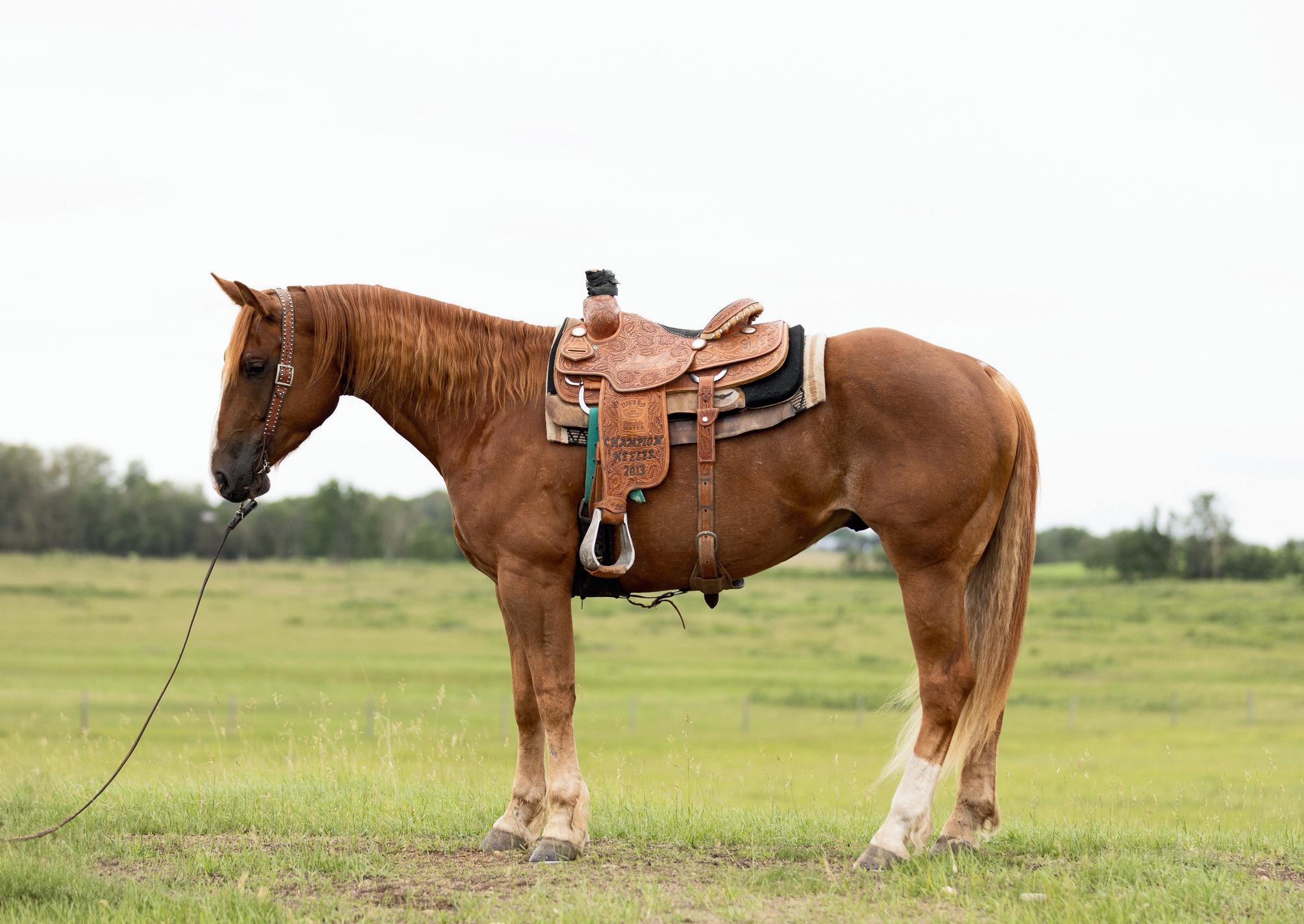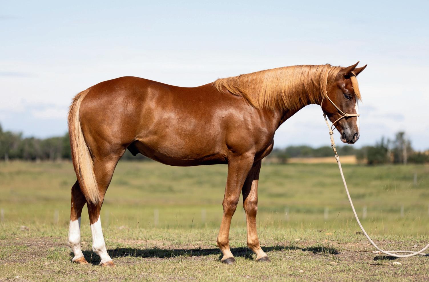 "Red" is a strong, quiet, flashy sorrel gelding that will make an excellent addition to anyone's herd. At 7 years old and 15hh, Red is ready to go to work. Whether you need him as your next go to ranch. pasture, branding, arena or trail riding horse, Red will be your main mount. Red is sired by Truders Skip A Bar and is out of HOH Cotta Get Me One. Red is strong, straight legged and good footed. He requires no special maintenance and has always been sound. He is an easy keeping horse, both in summer and winter. He is up to date on vaccines (Vetera gold) and has had his teeth floated this summer. As a ranch horse, Red has been used for moving and sorting cows. He has been used in the pasture to rope and doctor cows and calves and has been hauled to brandings. One of Red's best qualities is his attitude. He has an excellent disposition and wants to please. He is casy to catch and will meet you at the gate. He is confident when riding out alone or with other horses and will go in any direction you point him in. He does well with time off and inconsistent riding and is the same horse that you turned out in the pasture months ago. He is comfortable around kids, dogs, vehicles and equipment. Rad is our go to trustworthy horse when riding with or leading our 2 year old son.Please contact Clayton Loewen (306) 260-2853 for additional information. We will be sad to see Red go but are looking forward to seeing him excel with a new rider.