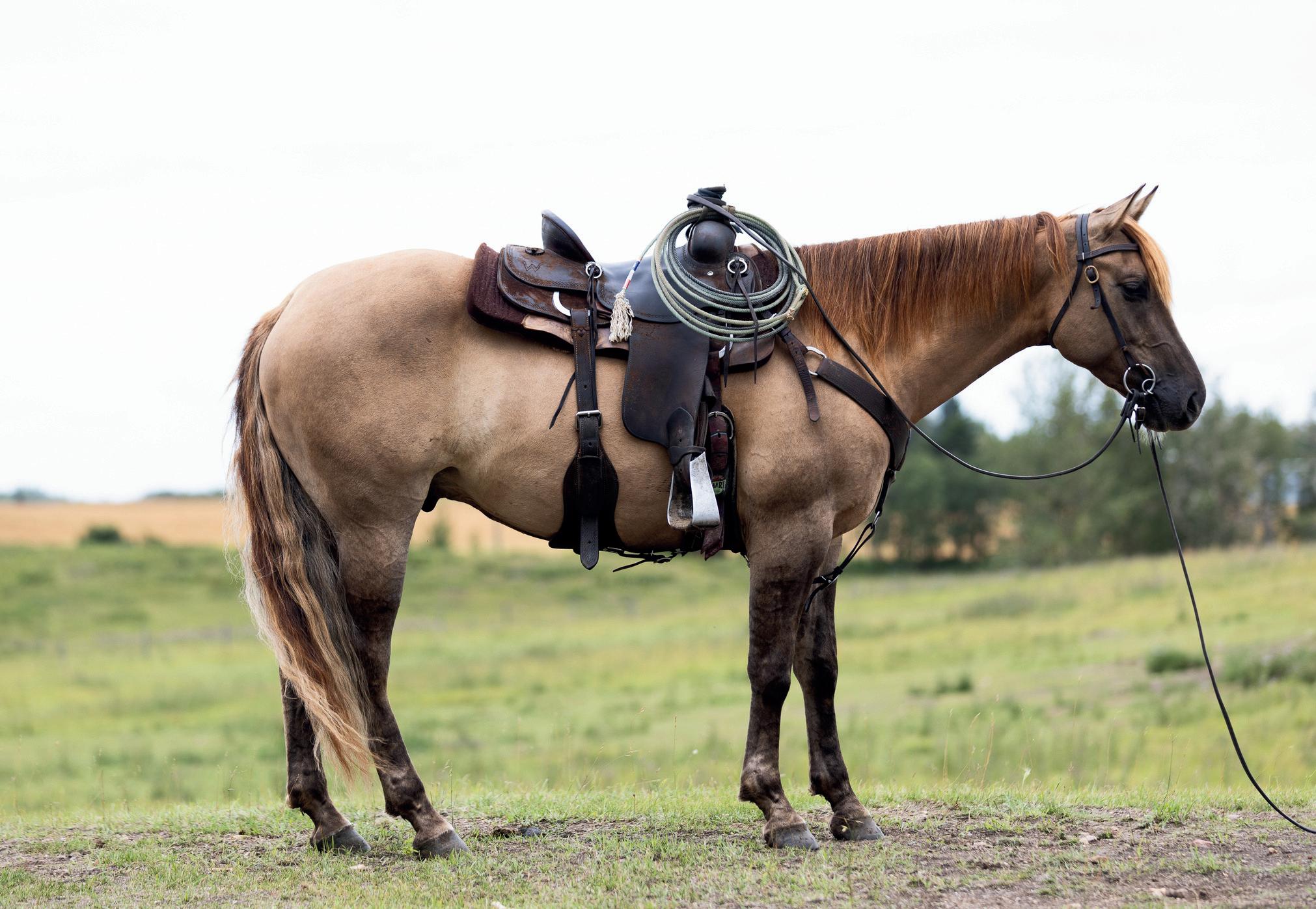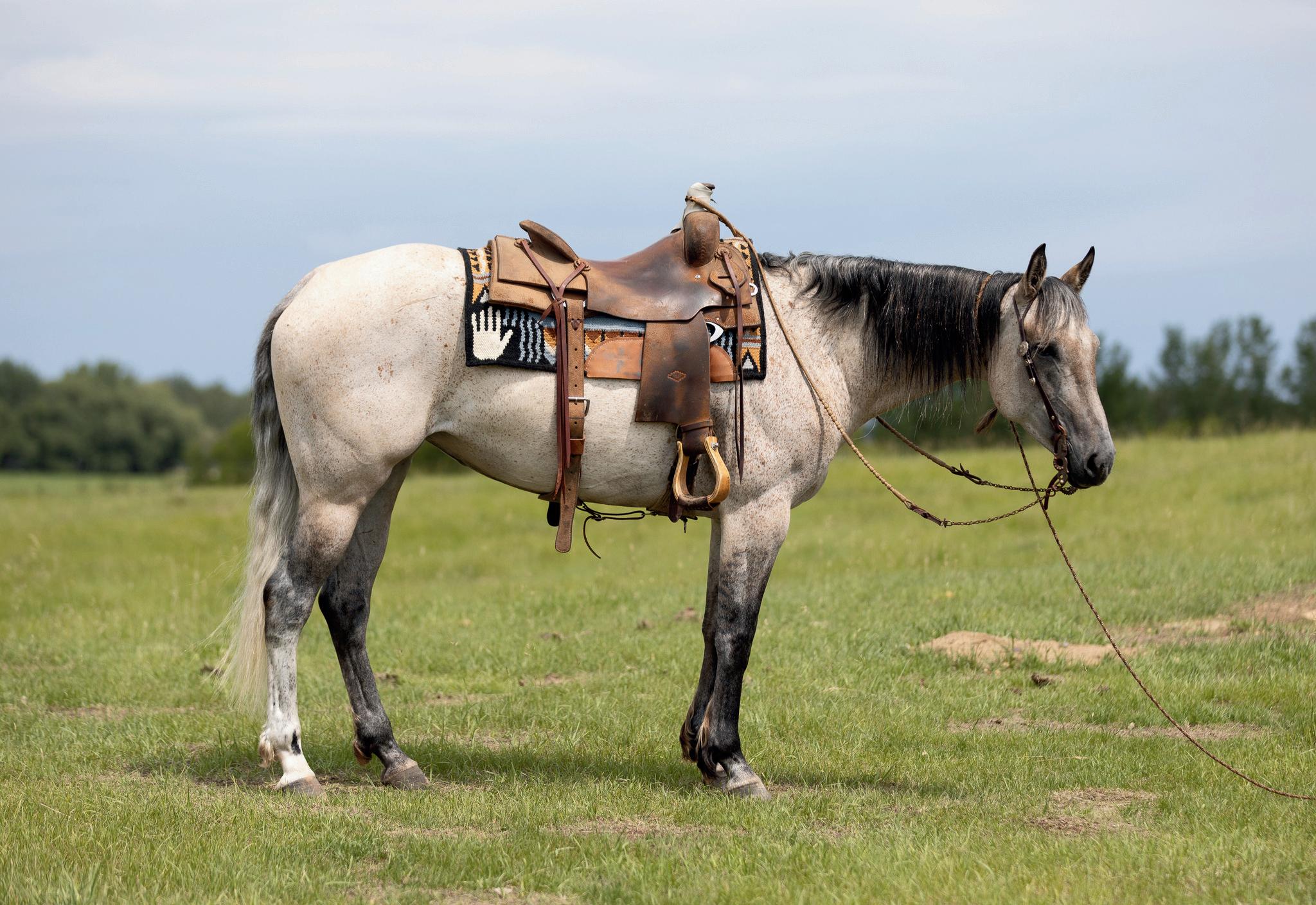 Cowboy, a 6 year old grey gelding. He stands 15.1hh, with a good disposition. Cowboy has done everything ranch related from sorting, branding, pasture roping, trailing cows and even used for starting colts. He will have some team roping experience on him by sale day. He is easy to get along with and fun to ride, don't pass up on this guy he is a good one. for any questions call Curt Vossler 403-928-2557