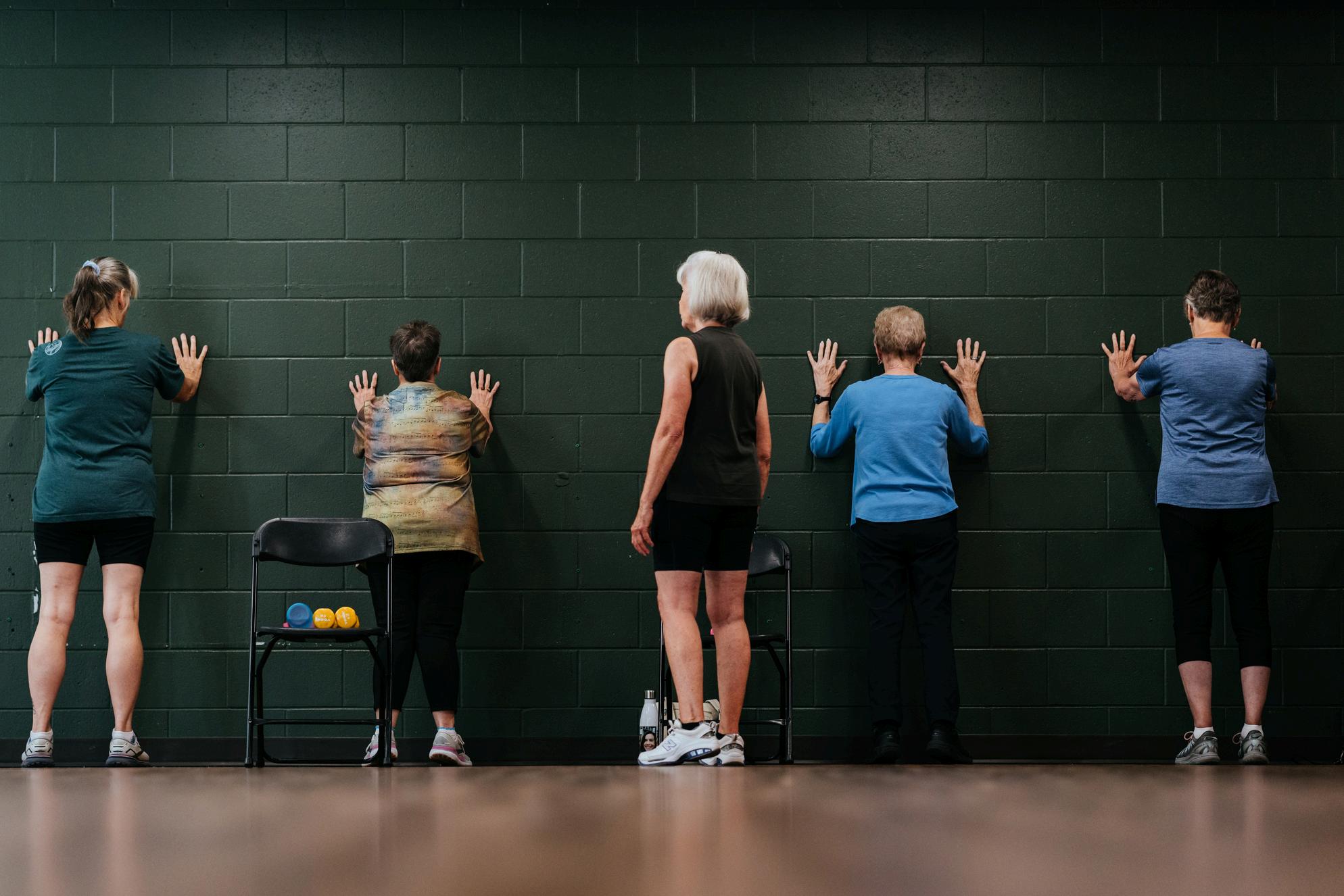 Gentle Dryland exercise program that includes chair exercises, strength, mobility, balance, and relaxation.