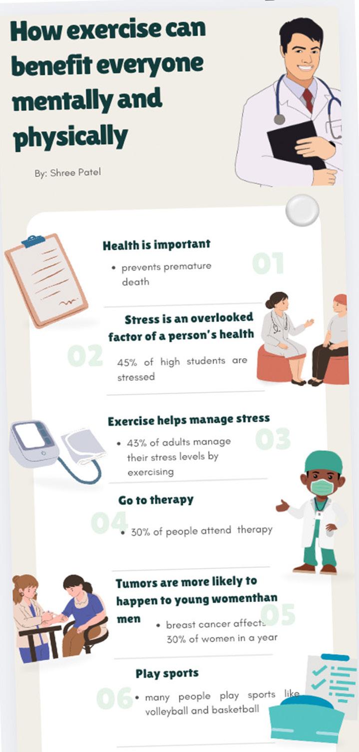 “Exercising increases the number of endorphins that are released into your body and increases productivity.” Shown here is how being physical can affect your mental stability. Another site called mayoclinic.org says, ”being active boosts high-density lipoprotein (HDL) cholesterol, the “good” cholesterol, and it decreases unhealthy triglycerides.” This is why many people with high blood pressure or other controllable disease diagnoses’ exercise daily. They need to do it to keep their body from producing too much of something and controlling their levels of intensity.