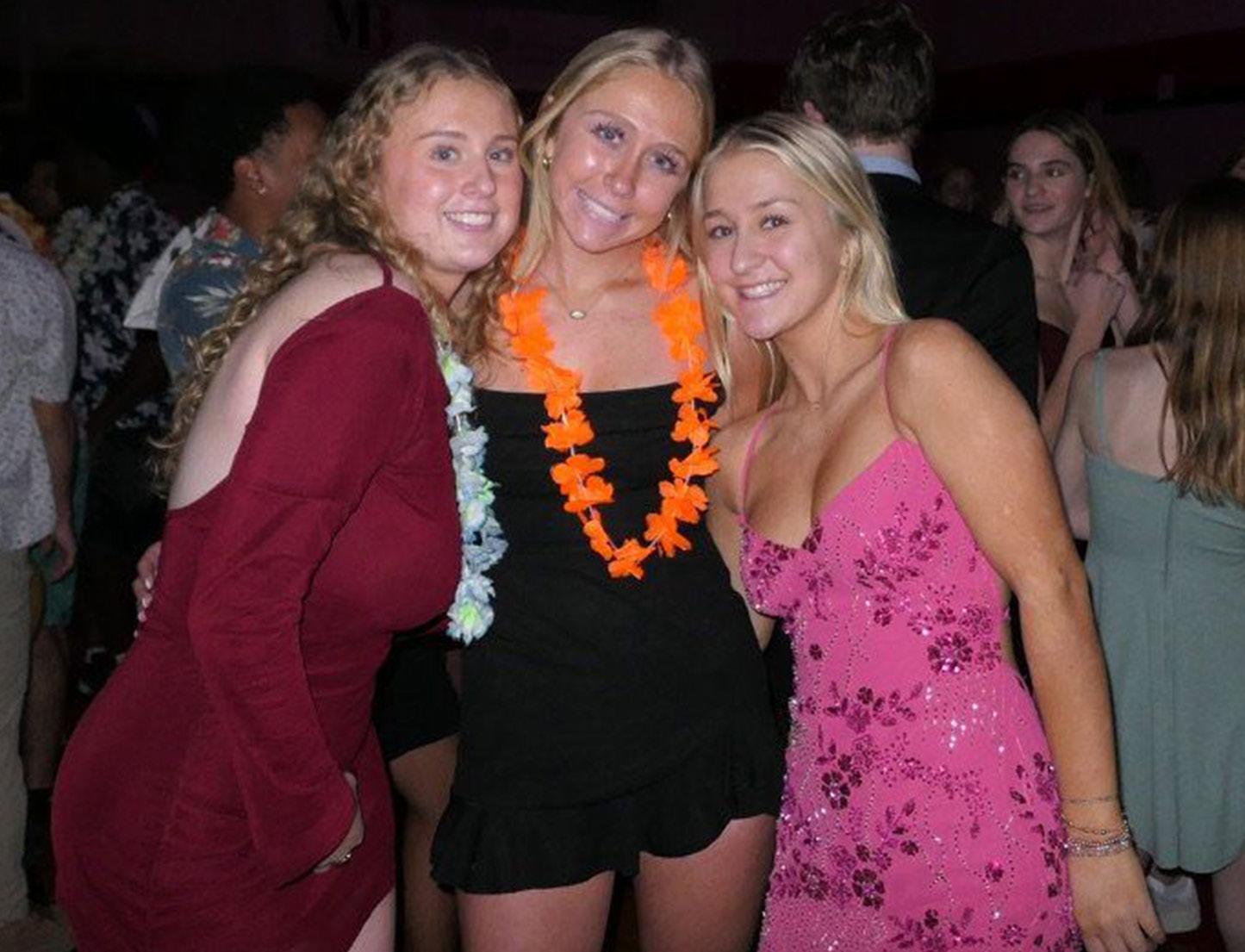 Remi Lewis ‘27, Kenzi Gibbs ‘25 and Eliza Vogel ‘26 pose for a picture at this year's Sadie Hawkins Dance. Every year the Upper School SCA puts together a Sadie’s Dance where the girls ask the guys to the dance. The theme this year was tropical, so the dance had beachy decorations and leis for guests to wear at the dance. One of the most exciting parts of the dance was the mechanical surfboard and the competition that arose from it. “I had so much fun watching the surfboard competition,” said Annabelle Coles ‘27, “I wish I had signed up, I might have even won”. The winners of the competition won gift cards to various fast food places along with the first place winner Isla Wittle ‘28 winning $100. In conclusion, this year's Sadie Hawkins dance was lots of fun filled with dancing and competition. Caption by Dara Kerman.