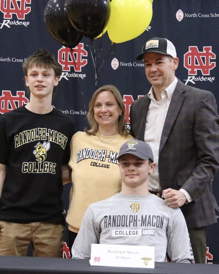 COMMITTED: With his family with him, Thomas Greer ‘25 committed to Randolph-Macon college to play D3 lacrosse for the Yellow Jackets in Ashland, Virginia. Greer plays midfield for the Raiders, has been playing lacrosse for five years as a varsity player for his entire high school career. “The will to win has pushed me the most along with my parents always supporting me through the process,” Greer ‘25 said. He also thanked Justin Jensen ‘21 for his work in the weight room, which helped him significantly on the field. “My favorite memory playing lacrosse was when we beat Christchurch in the state championship my freshman year in 2021,” Greer said. “Next year . . . I will continue to develop into a great player and person. I will accomplish this by constantly working hard on the field and in the classroom.” Photo by Suvi Hansen