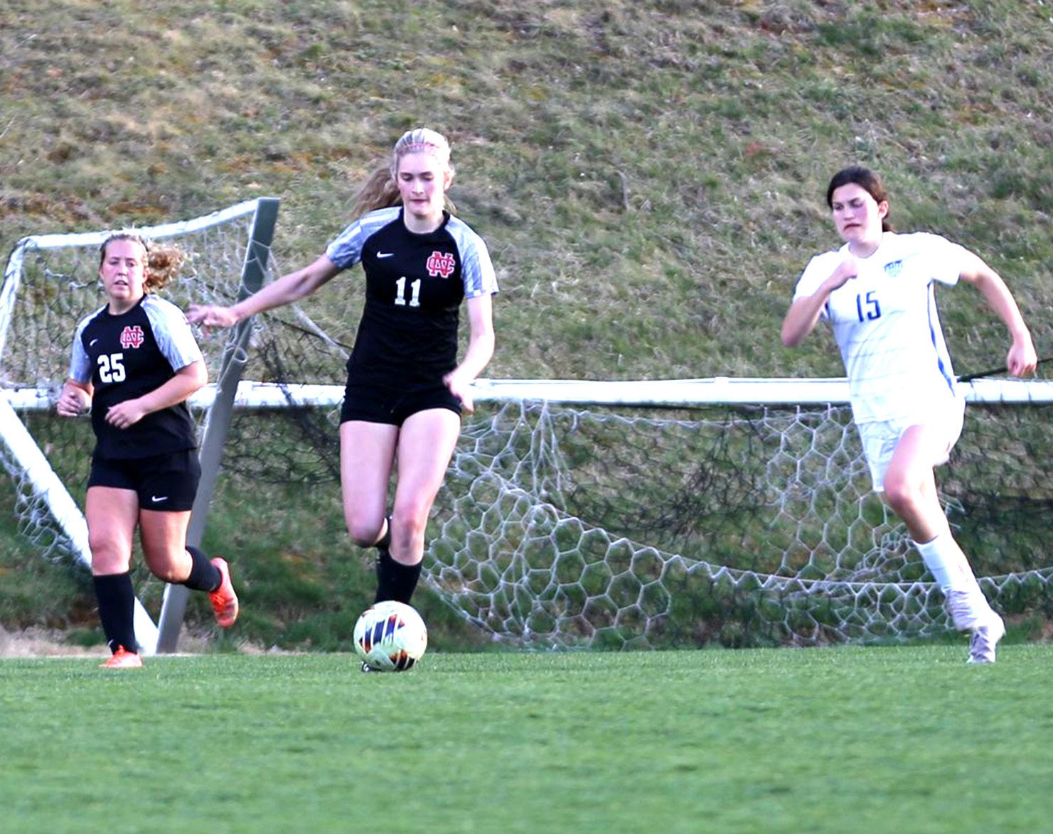 Messager: Eliza Vogell ‘26 gives a speech about what Morgan’s Message is and what it does at the girl’s varsity soccer game on April 23 against Carlisle. Photo by Jennie Vogel