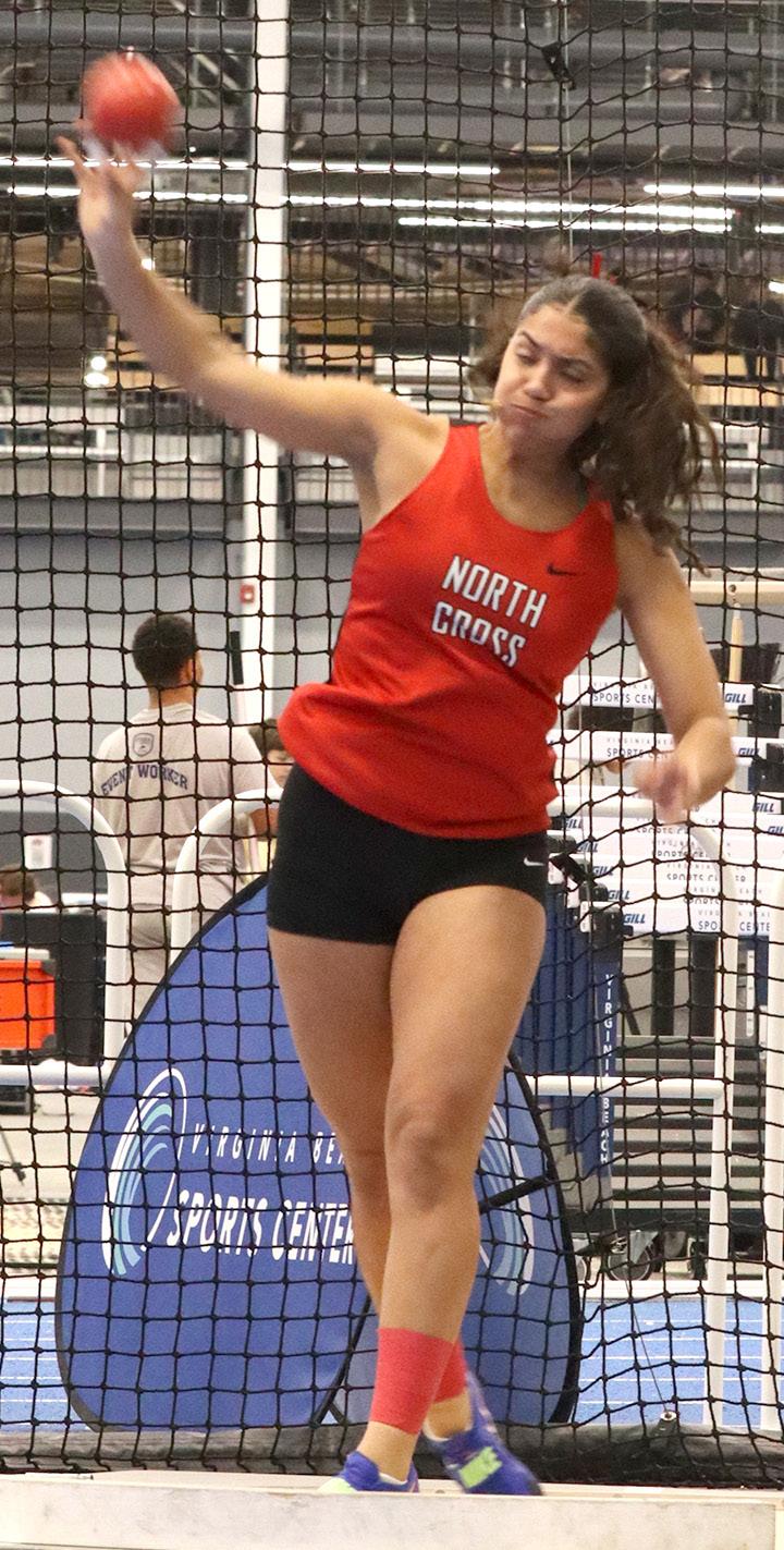 Holmes, a transfer from Lord Boutetourt, bolsters the indoor track teams in field events. She threw 38-4.75, while Chen put the shot 37-11.50 hauling in 10 and 8 points respectively toward the team total of 107.50.