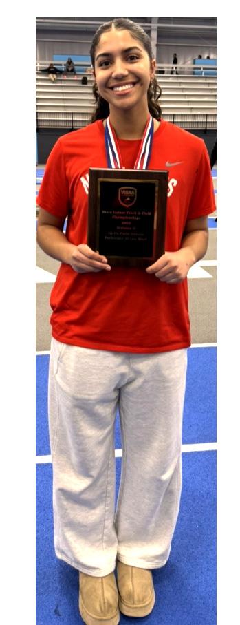 When asked to describe her experience in the indoor track state championship in one word, she said, “Exhilarating. It was so fun to experience this with my friends,” she said. “Hopefully I can do it again.”