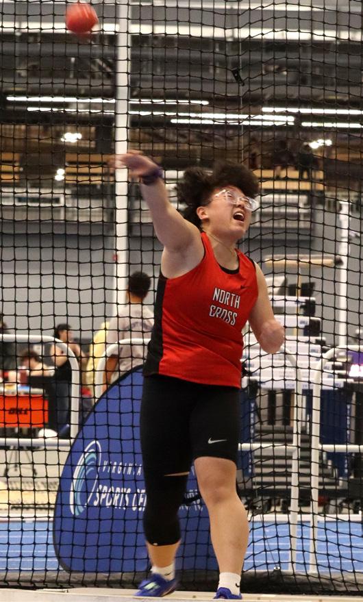 Sprinting, jumping and throwing in the indoor track state championship, Alicia Holmes ’27 showed strength and determination by competing in four events: the 4x200-meter relay, high jump, long jump and shot put, scoring 21.5.