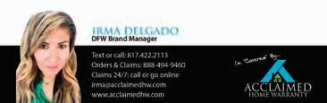 Acclaimed Home Warranty Irma Delgado (817) 422-2113 AcclaimedHW.com
