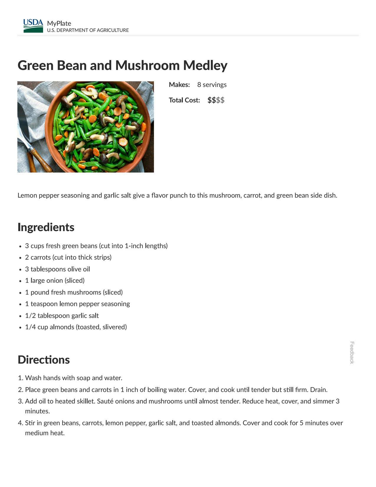 For Nutrition information about this recipe, visit https://www myplate gov/recipes/green-bean-and-mushroom-medley