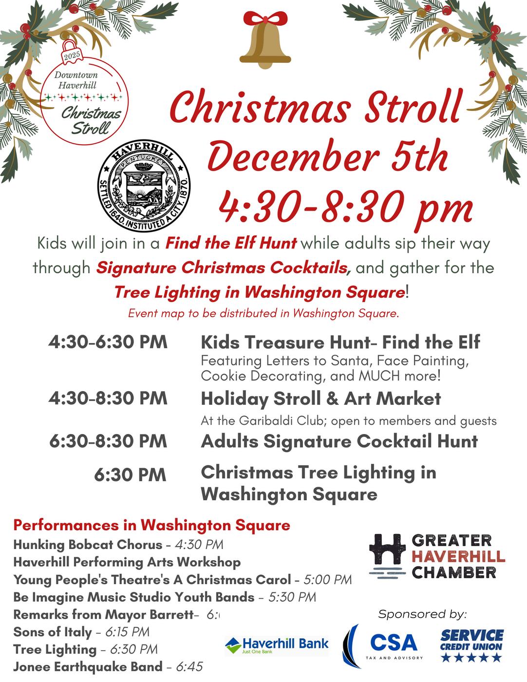 Price:$15.00each 4:30-6:30 Kids Scavenger Hunt & Santa throughout downtown 4:30-8:30 Holiday Market at the Garibaldi Club 6:30- Tree Lighting in Washington Square 6:30-8:30 Adult Scavenger Hunt for signature holiday cocktails throughout downtown