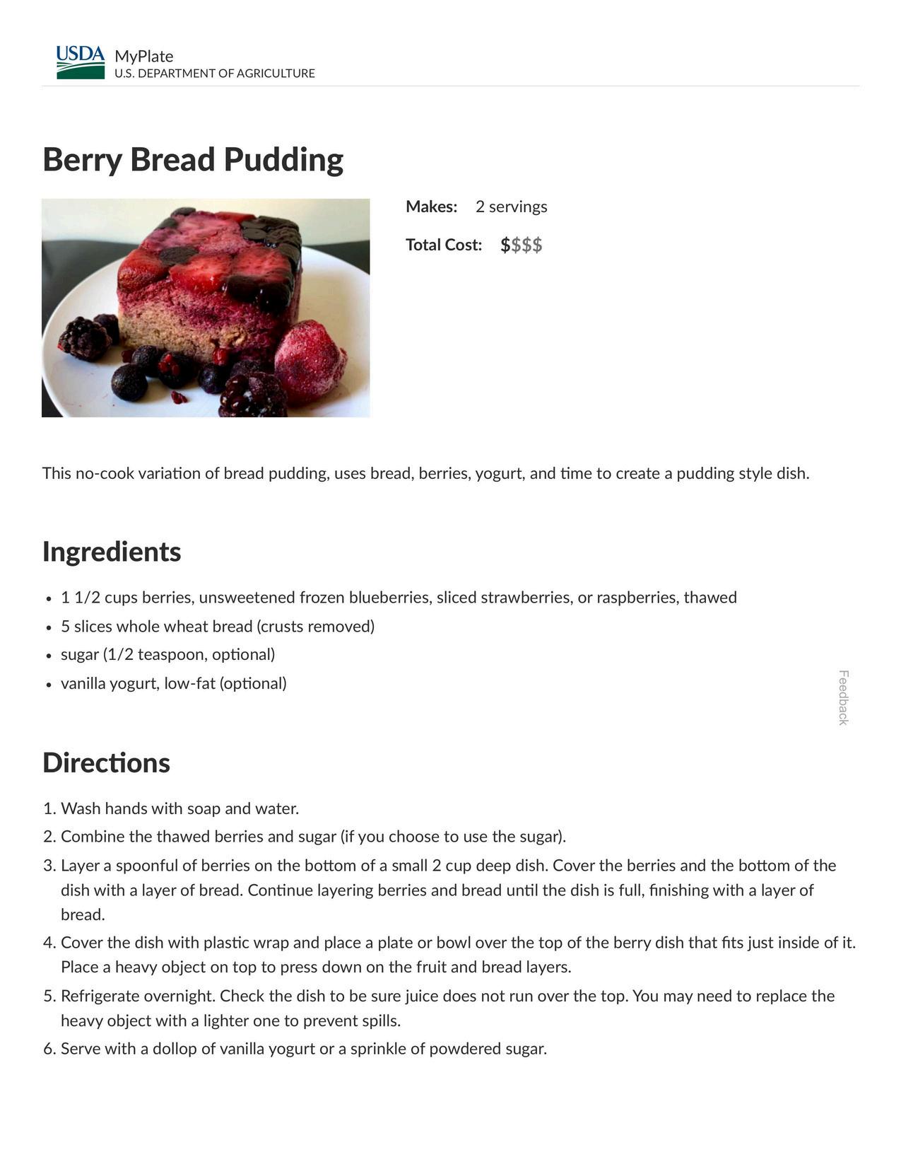For more information about this recipe, visit https://www myplate gov/recipes/berry-bread-pudding