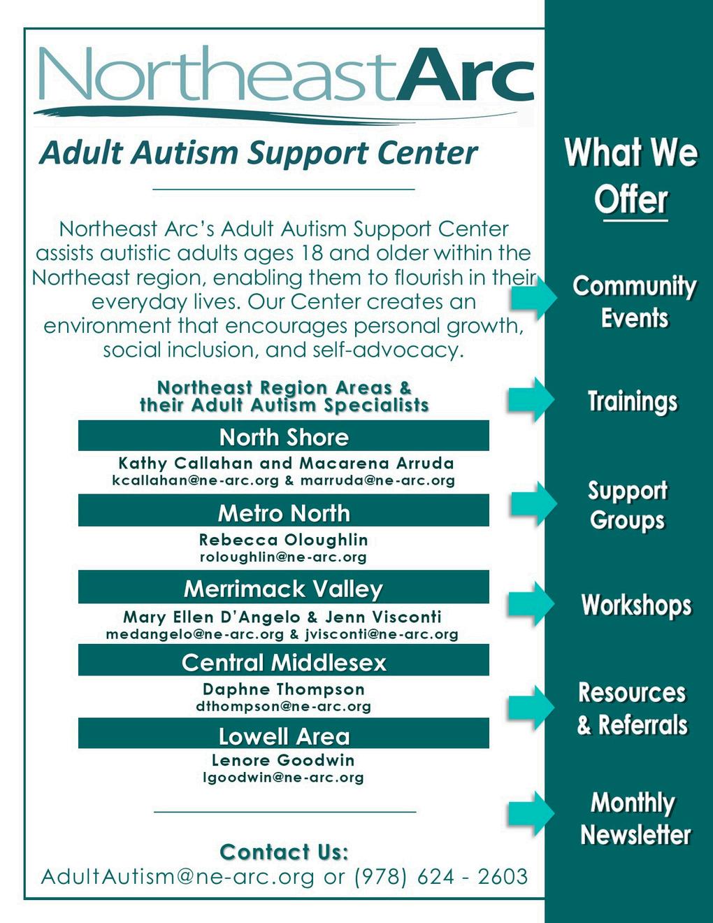 Northeast Arc’s Community Resource Center connects individuals and families with valuable resources and events in their local communities. By providing access to these resources, the Community Resource Center empowers families and individuals to actively participate in community life, creating a sense of belonging and inclusion.