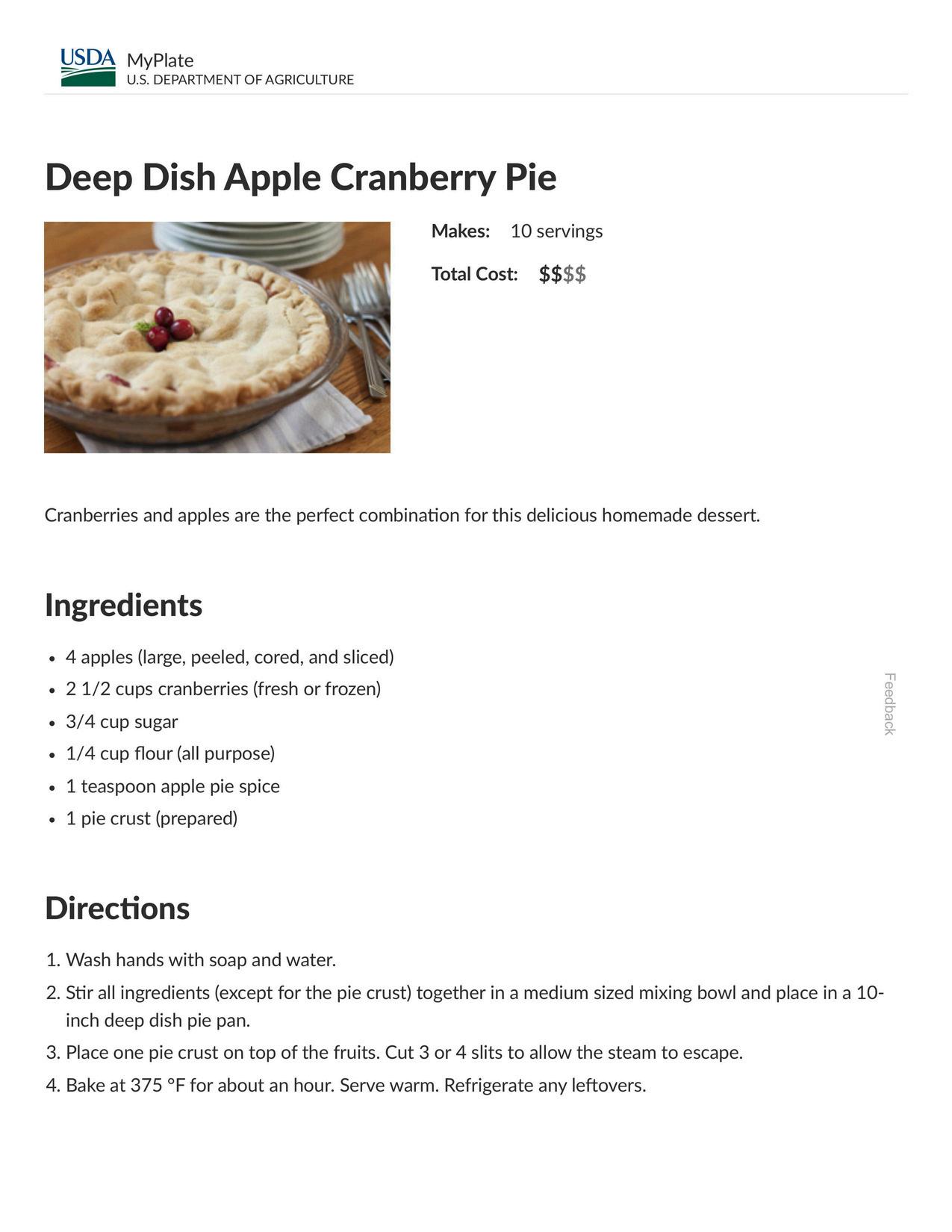 For more information about this recipe, visit https://www myplate gov/recipes/deep-dish-apple-cranberry-pie