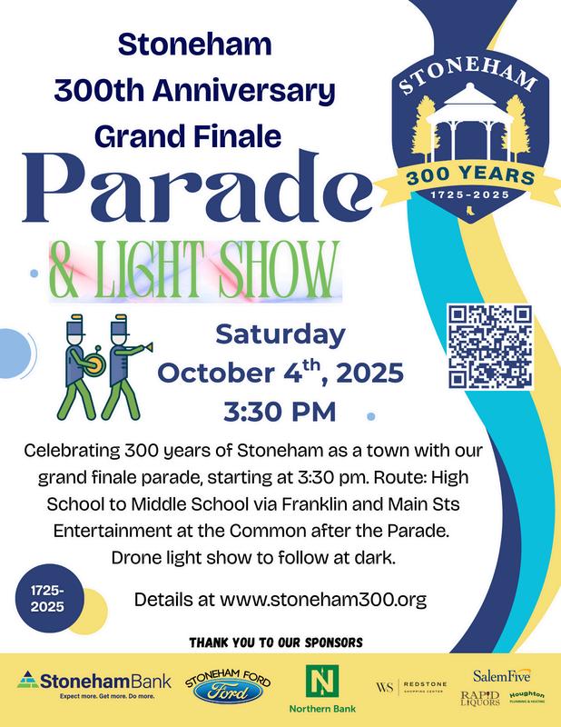 STONEHAM 300 ANNIVERSARY TH PARADE, FESTIVAL, & DRONE SHOW STONEHAM COMMONL