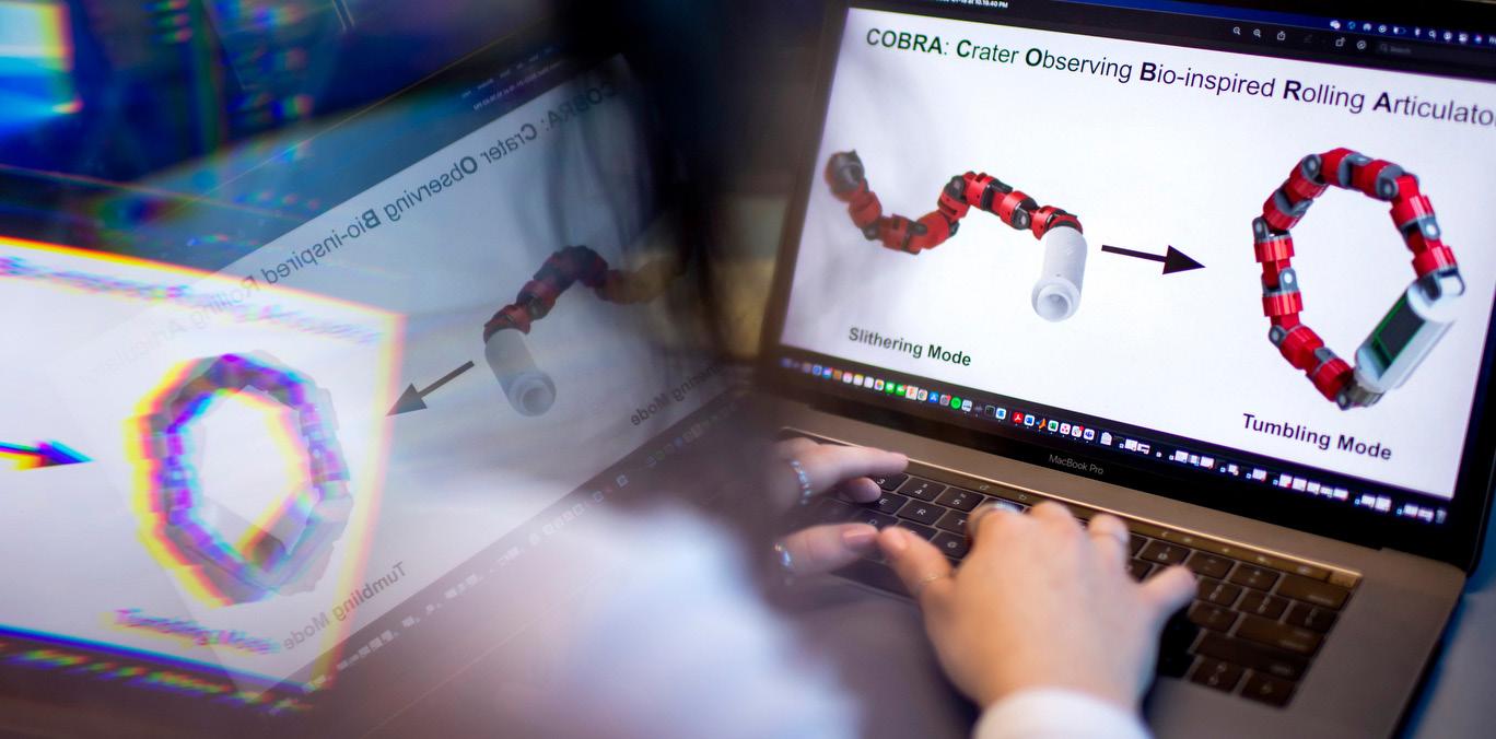 Students for the Exploration and Development of Space student group, advised by Assistant Professor Alireza Ramezani, electrical and computer engineering, was one of seven university teams selected as finalists in the 2022 NASA’s BIG Idea Challenge. The team’s project, titled “COBRA: Crater Observing Bio-inspired Rolling Articulator,” is a snakelike design for their robot to allow it to traverse the extreme terrains on the moon’s surface.