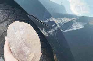 The same can’t be said for many vehicles, some of which had their windscreens and headlights smashed by rocks as large as a hand.