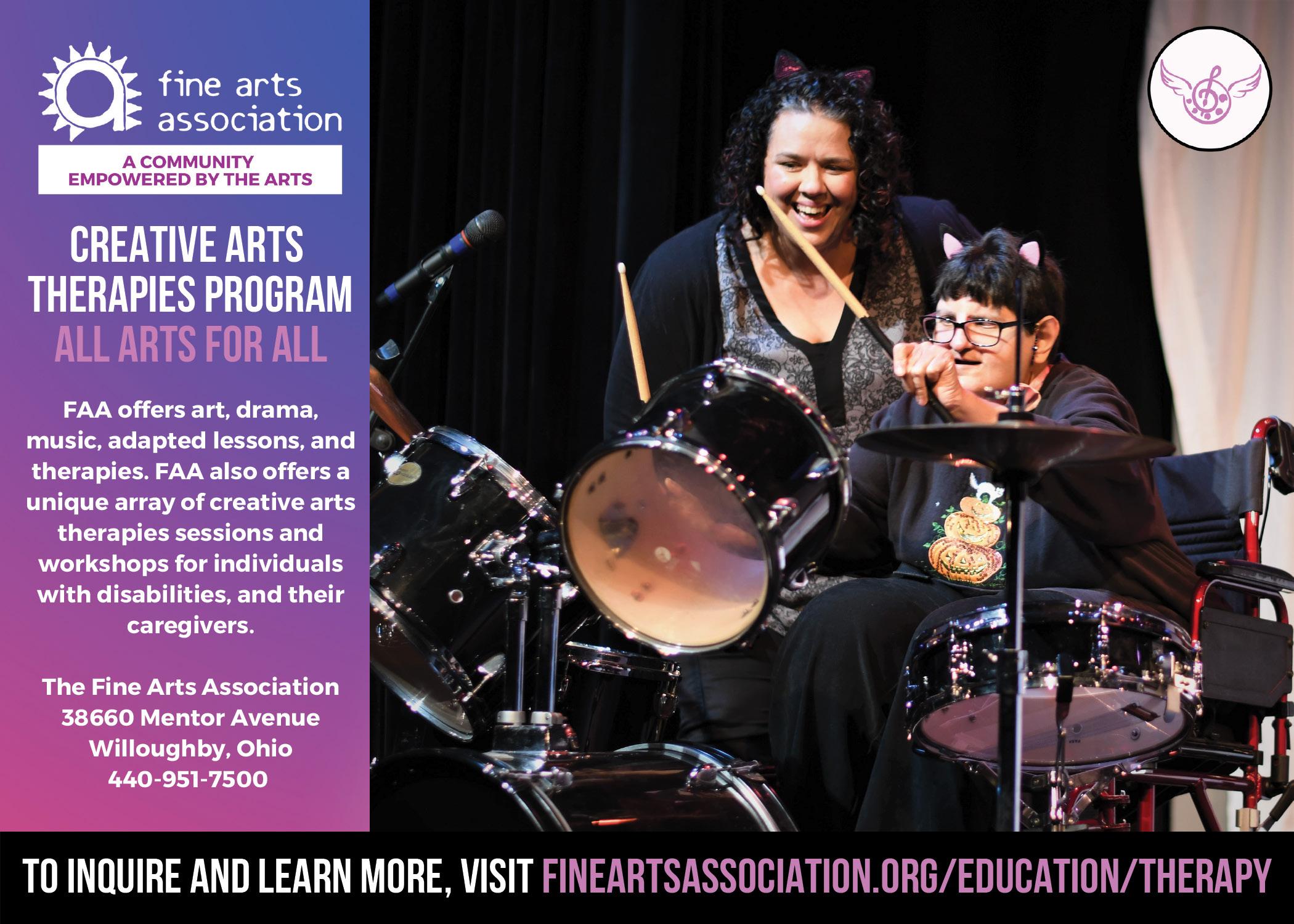 Guided by its values of equity, integrity, growth and community, The Fine Arts Association (FAA) seeks to create and discover beauty to foster a community empowered by the arts. FAA offers arts education programming in dance, music, theatre, visual arts and Creative Arts Therapies for all ages and ability levels. In addition to arts education, The FAA Performance Department creates opportunities for members of the community to be involved in every aspect of the theatrical experience. From family musicals to performances by professional musicians, the dynamic performance season has something for everyone. 440-951-7500, fineartsassociation.org