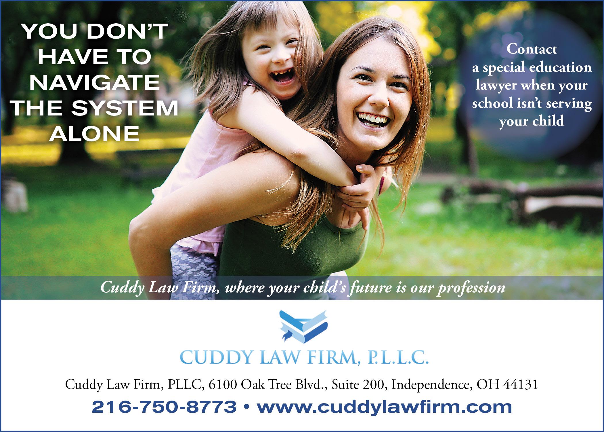 A law firm dedicated to helping families secure better resources for their children by assisting families navigate the special education system. The team of professionals is dedicated to ensuring that a child’s school provides the education required by the law. Contacting a special education lawyer may be the best way to protect your child’s future when your child’s school isn’t providing them appropriate services. Office in Independence. 216-730-8773, cuddylawfirm.com