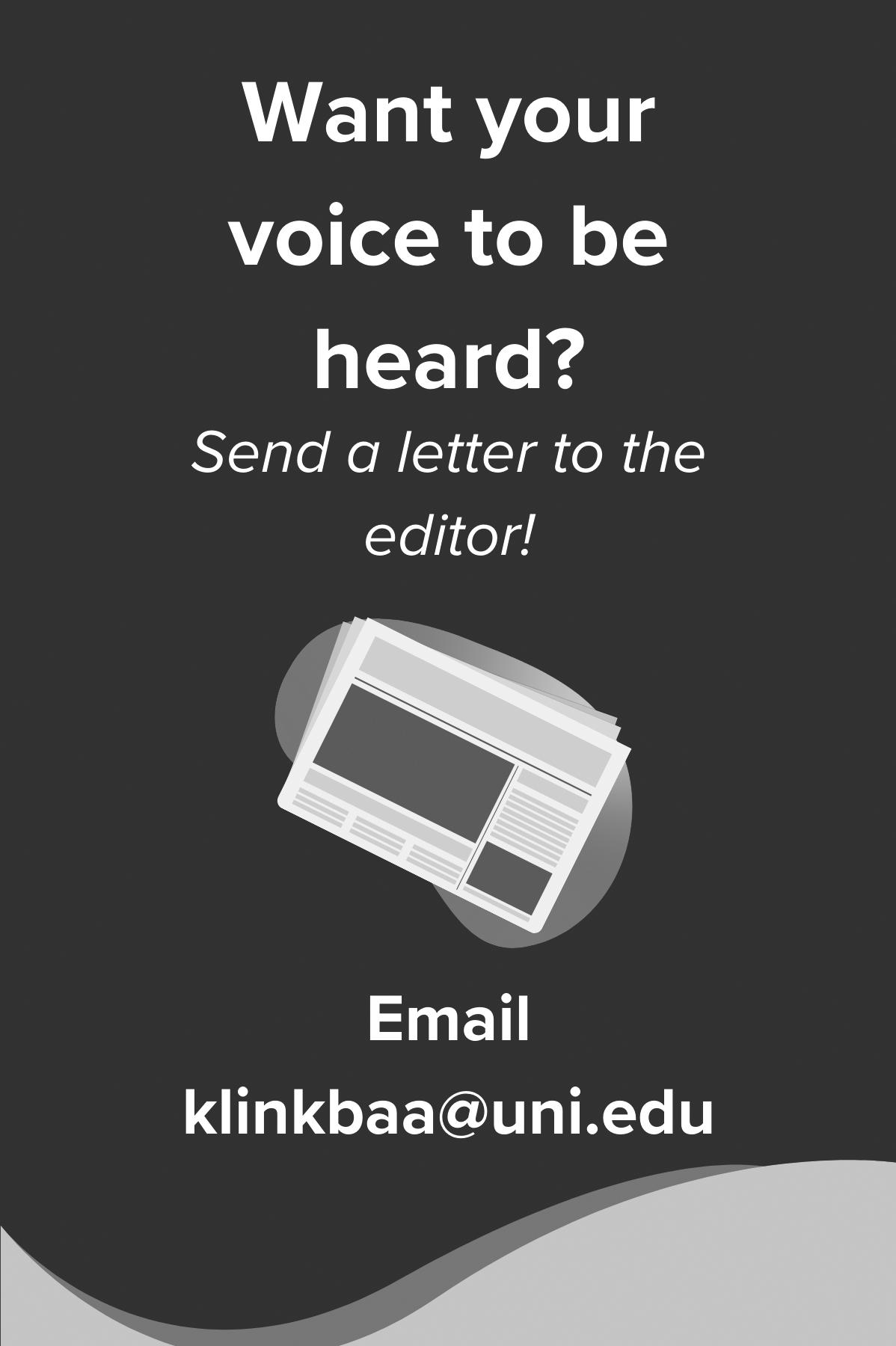 Letters must be less than 300 words in length and are subject to editing. Not all submissions will be printed. Send submissions to northern-iowan@uni.edu.