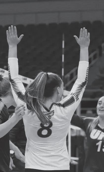 The Panthers would then go on to play No. 4 Louisville. UNI would make Louisville work for their win in the first set, as posed a team 17 kills in the match. Going on a 5-0 lead they would cut the Cardinals lead to just one. They would go pointfor-point with Louisville down to the wire, but the Cardinals pulled away in a 25-23 win. Cassidy Hartman would have five kills, while Lily Dykstra and Olivia Tjernagel would bookend with four a piece.