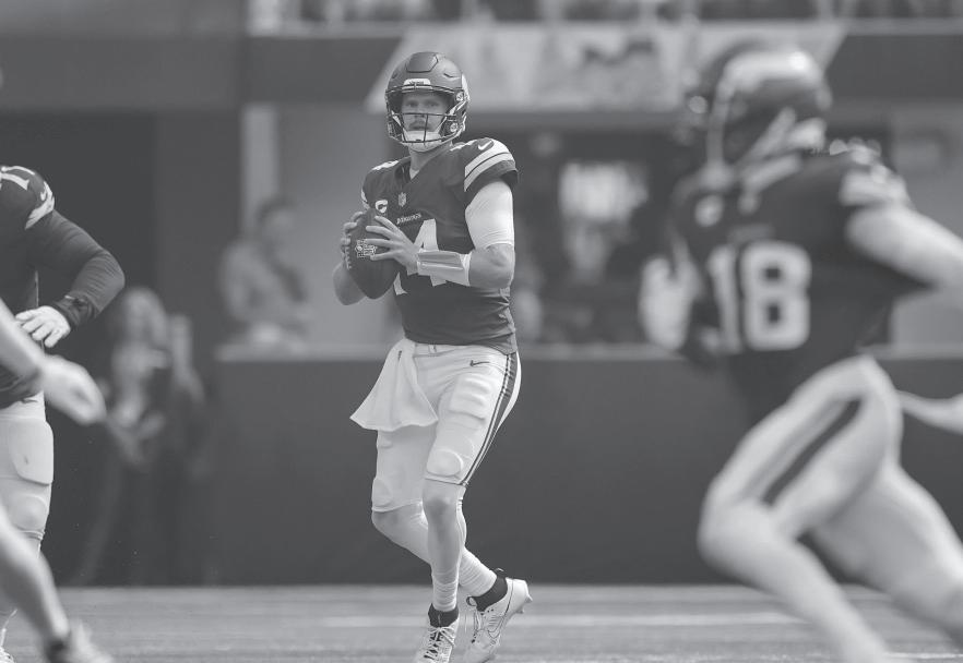 people talking. Linebackers Van Ginkel and Cashman have already made big plays this season, with Van Ginkel having a pick six in the team’s opener against the Giants, and Cashman interrupting a pass that would become an interception in a crucial moment against the 49ers last Sunday. Returning linebacker Patrick Jones II is second in the league in sacks with four, as Van Ginkel has two of his own as well. The front seven of the Vikings were the cause of both Daniel Jones and Brock Purdy to feel heavy pressure in both games, ultimately leading to an 11.5 PPG average to opposing offenses through two weeks. Though the signings and returning players are playing well, most of the credit, I believe, is due to Defensive Coordinator Flores. A former head coach with the Miami Dolphins, Flores has turned the defense without any big names into a collective unit of playmakers early in the season. The energy is evident in the games, with the team not centered around one play-