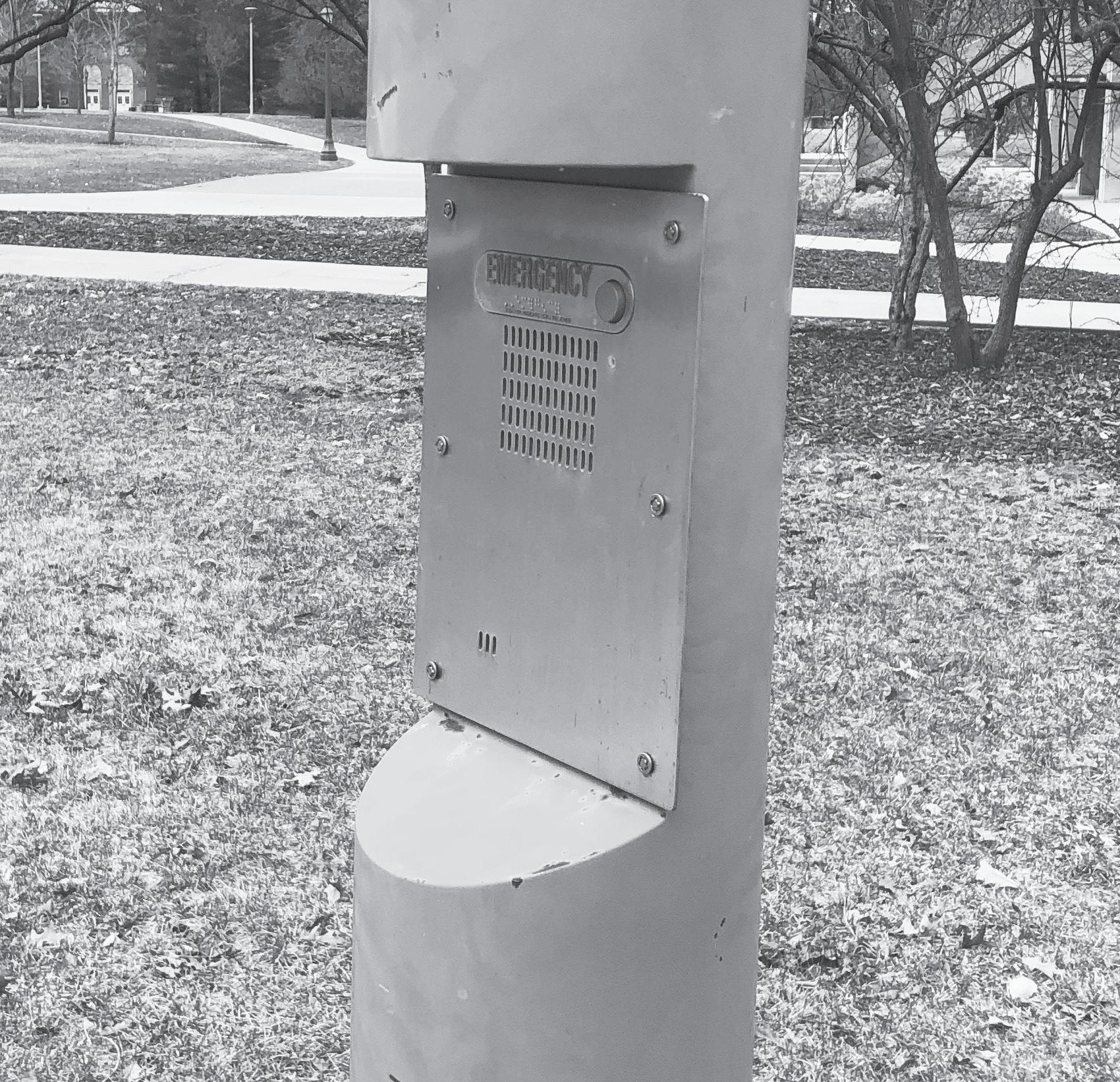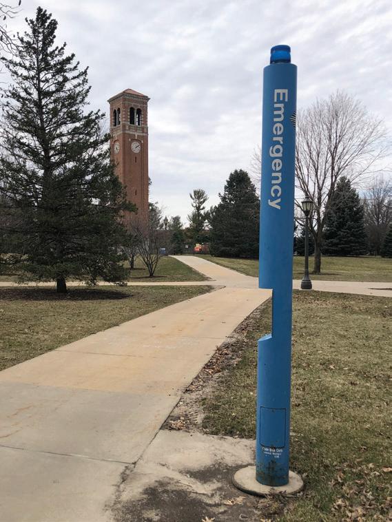 MALLORY SCHMITZ/NORTHERN IOWAN Los teléfonos azules de seguridad originalmente eran instalados en áreas muy traficados alrededor del campus desde los ‘90s.