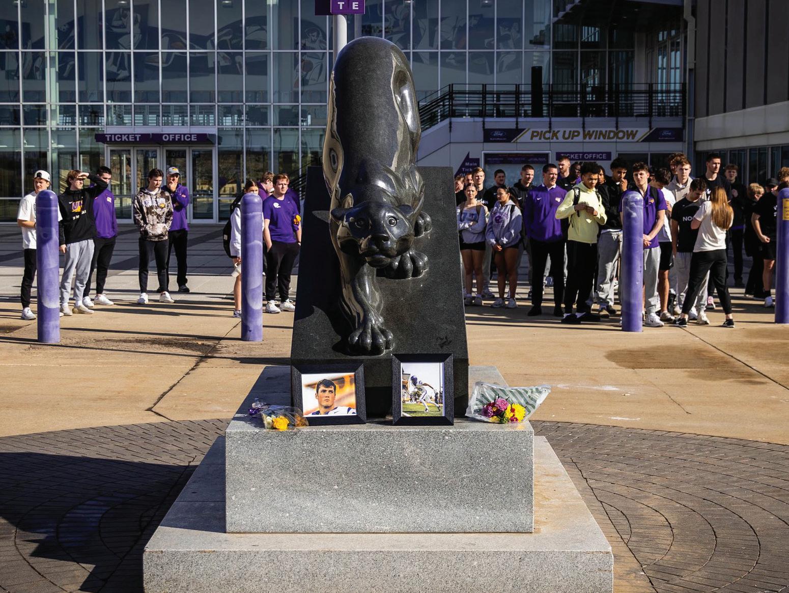 Campus and community members gathered around the panther statue outside the McLeod Center for a commemorative vigil on Monday, Feb. 16, to honor Sutherland’s memory and show their respect and love for the impact he had made on the team.