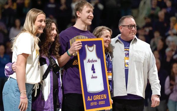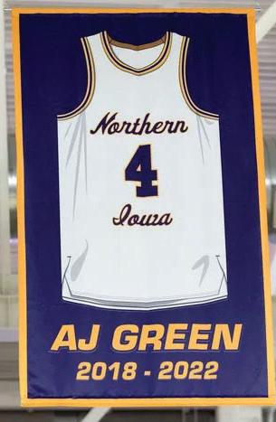 Former University of Northern Iowa basketball standout AJ Green saw his jersey be unveiled in the rafters ahead of the Panthers game against Drake last Saturday.
