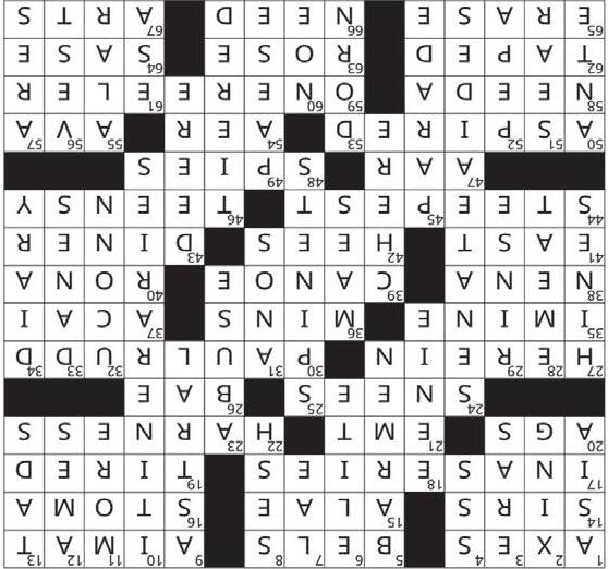 59) Old film short 62) Not live 63) Wine choice