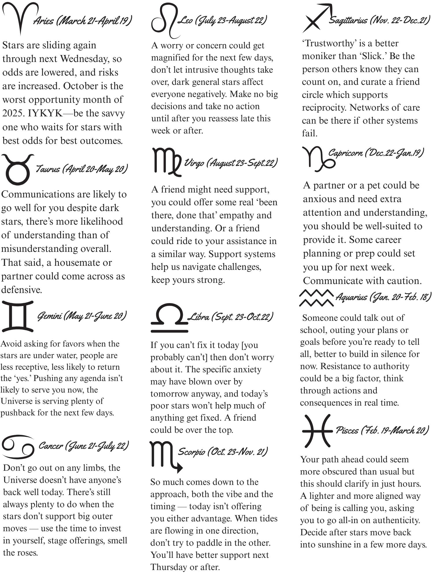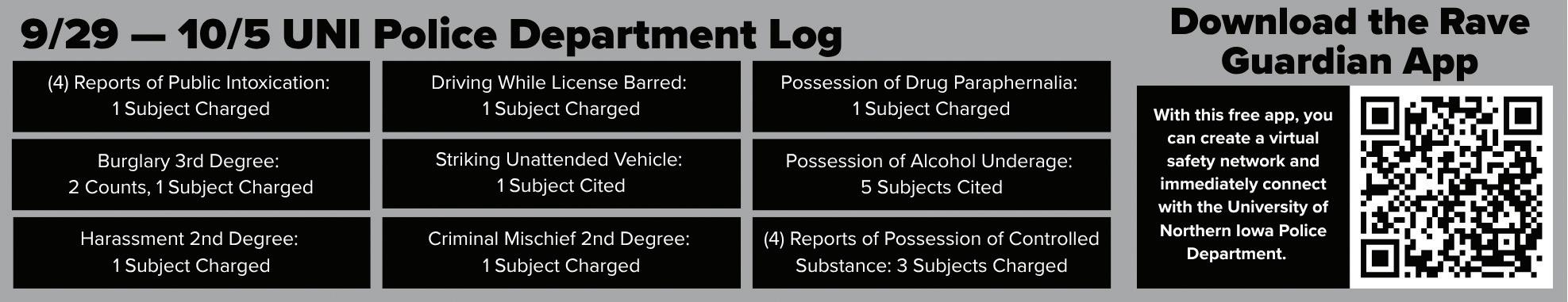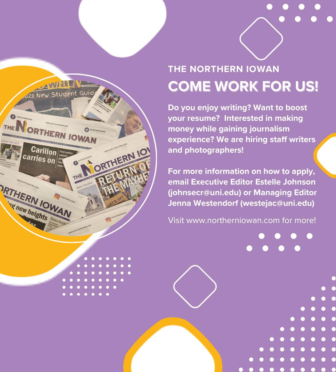 The Northern Iowan is published weekly on Wednesday during the academic year, except for holidays and examination periods, by the University of Northern Iowa, L011 Maucker Union, Cedar Falls, IA 506140166 under the auspices of the Board of Student Publications. Advertising errors that are the fault of the Northern Iowan will be corrected at no cost to the advertiser only if the Northern Iowan office is notified within seven days of the original publication. Publisher reserves the right to refuse any advertisement at any time. The Northern Iowan is funded in part with student activity fees. All material is © 2025 by the Northern Iowan and may not be used without permission.