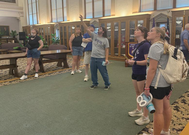 The tours originated from UNI’s Introduction to Public History course, taught by Kevin Mason, professor of history. Students in the class spent weeks researching building histories and learning how to present them in engaging ways for the public. Mason said the project is an oppor-