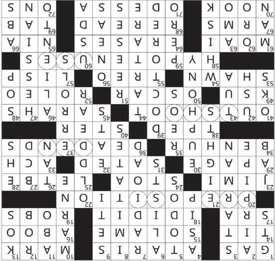 10) Inhabitant of the circled letters from UNI, with 70a 14) ___ for tat
