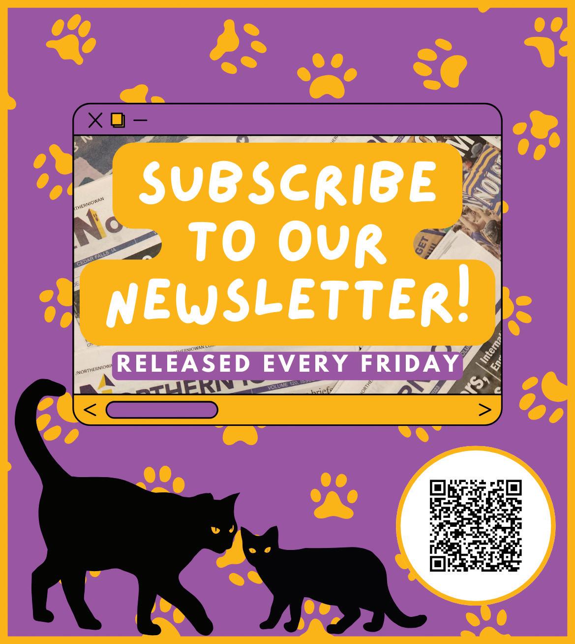 The Northern Iowan is published weekly on Wednesday during the academic year, except for holidays and examination periods, by the University of Northern Iowa, L011 Maucker Union, Cedar Falls, IA 506140166 under the auspices of the Board of Student Publications. Advertising errors that are the fault of the Northern Iowan will be corrected at no cost to the advertiser only if the Northern Iowan office is notified within seven days of the original publication. Publisher reserves the right to refuse any advertisement at any time. The Northern Iowan is funded in part with student activity fees. All material is © 2025 by the Northern Iowan and may not be used without permission.
