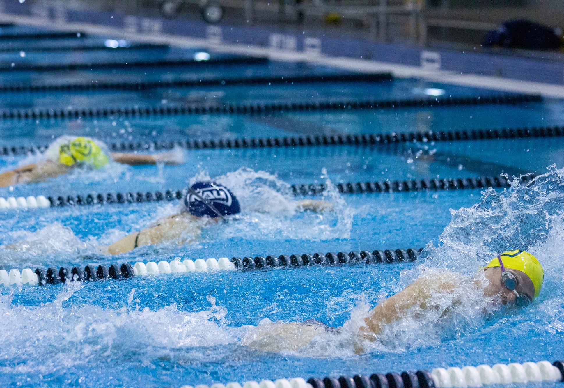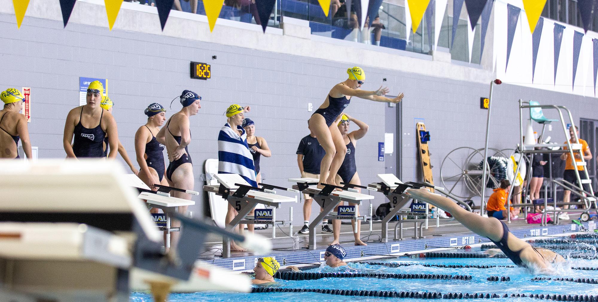 NAU swim and dive hosted its 40th annual Blue vs. Gold meet, an intrasquad meet where team members compete against each other for bragging rights and glory. The Gold team came out on top in the last event, winning it 55-49.