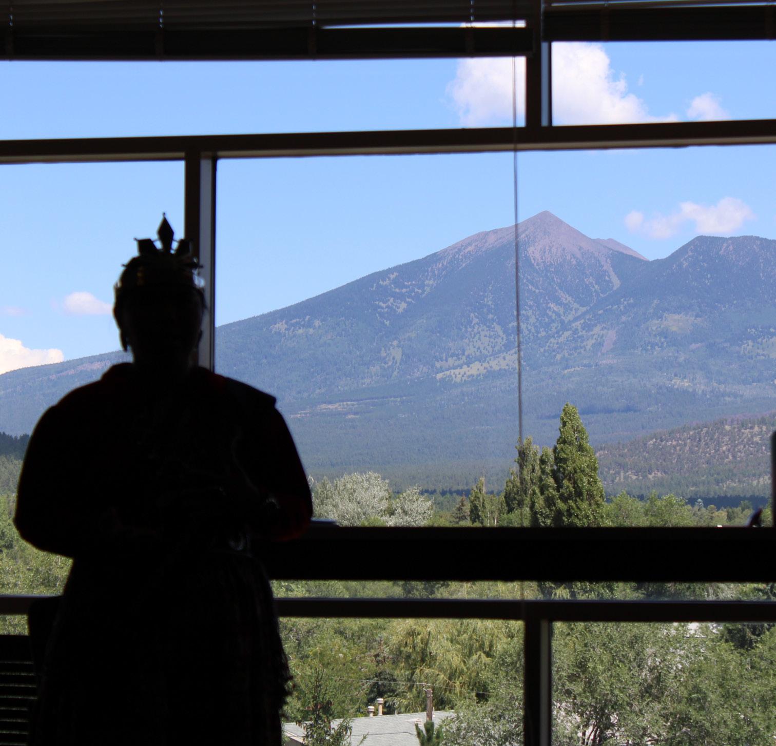 Once the group made it to city hall, NAU’s Indigenous Ambassador and senior Kaly Arvizu spoke first. Arvizu held a sign that read “T’ahdii kǫ́ǫ́ honiidlǫ,́” a Navajo phrase that translates to “We are still here.”