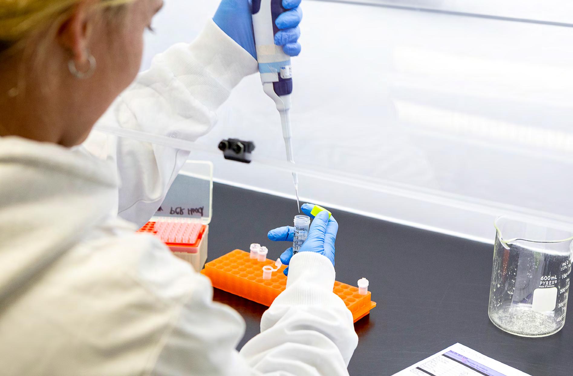 “Basically, we put an enzyme in solution with some buffers, and we digest the material,” Walker said. “That kind of gets everything ground up, and then we go through a series of adding buffers and using a filter to basically end up with purified DNA.”