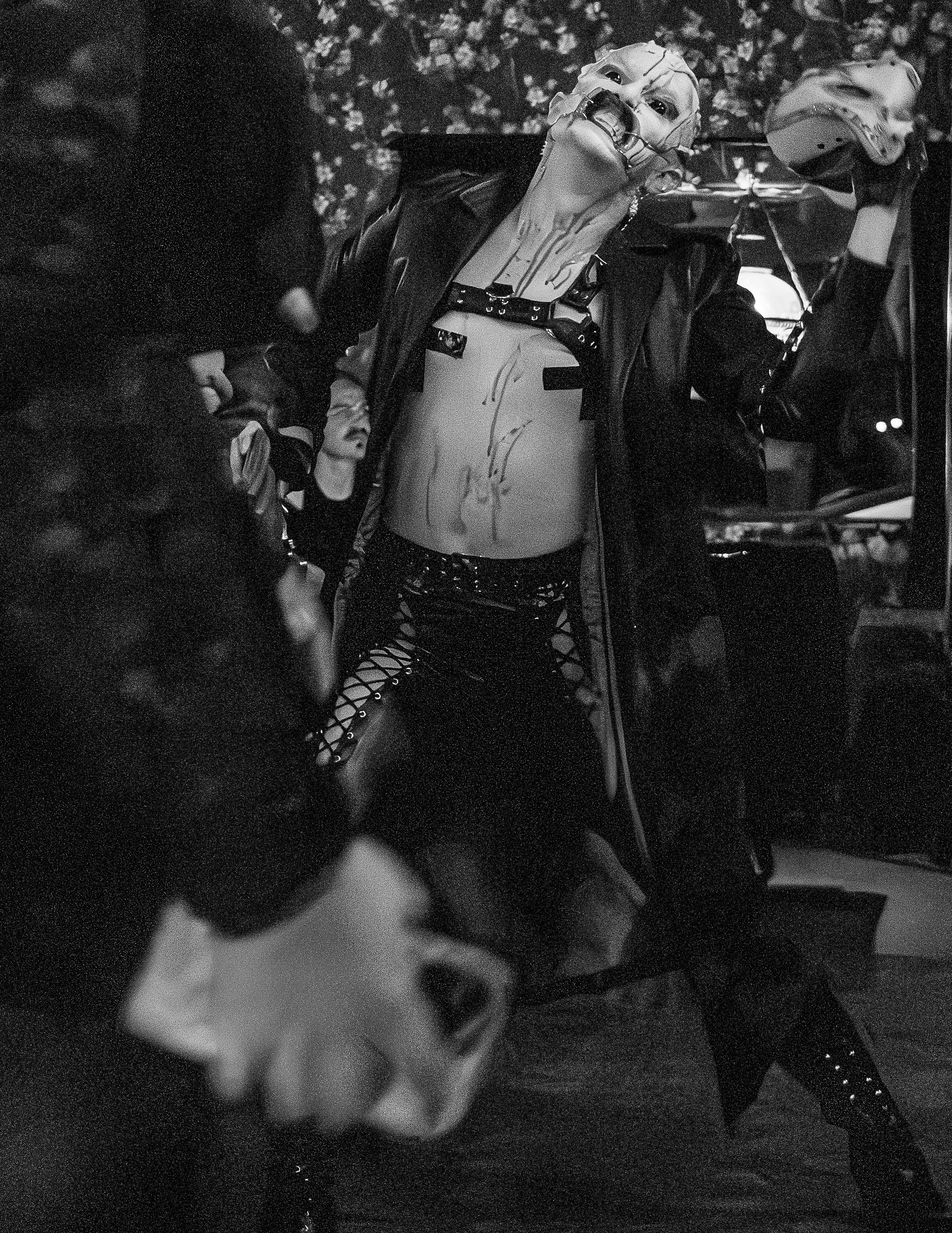 as something out of a horror movie; her drag looks embody grotesque body horror and eccentric facial expressions.