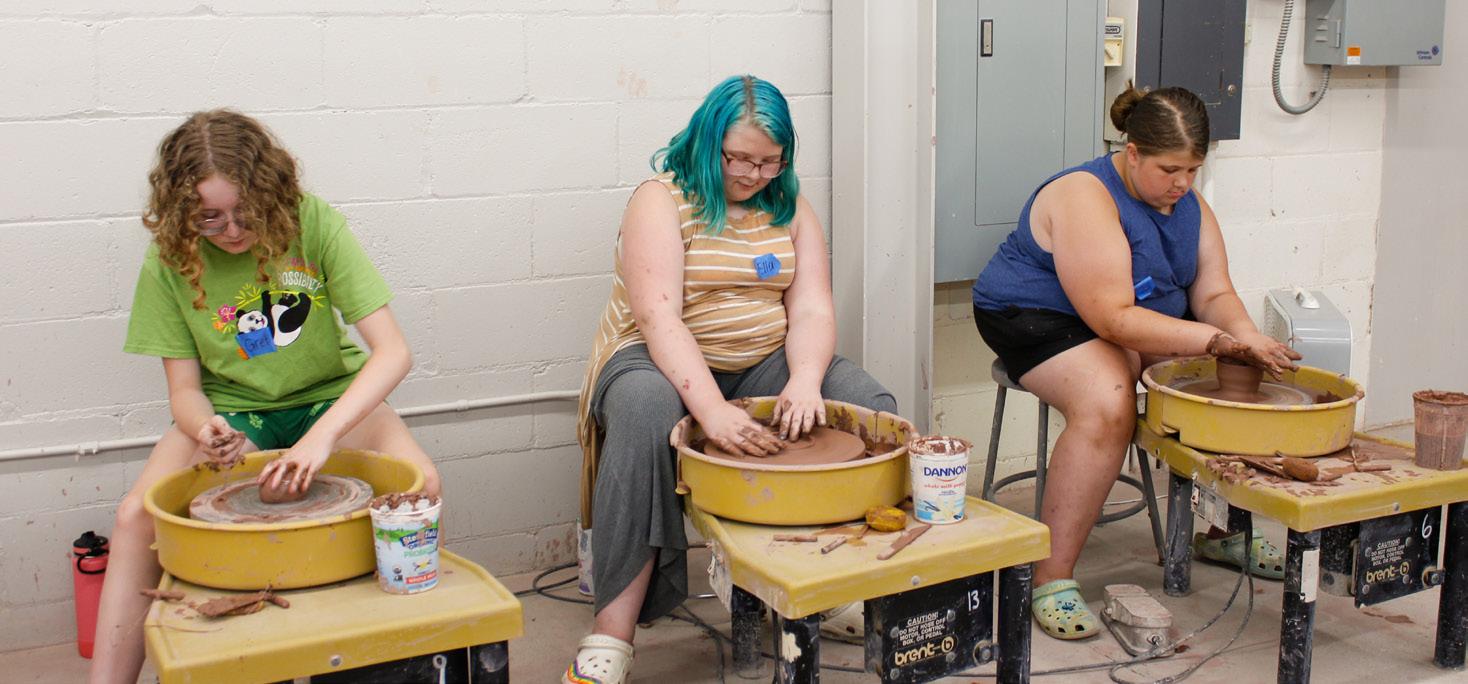 the fundamental techniques of throwing basic forms on the potter's wheel and creating surface decoration using glazes, slips, and applied elements, with varied demonstrations and projects for advanced students. Create a series of functional pots with high-temperature clay bodies. Previous experience is not required. Students may attend on a drop-in basis and the complexity of projects will depend on multiple consecutive classes. Great for students and families with busy schedules. Wear clothes that you don't mind getting dirty; NCC will provide the tools and the clay. Students do not have access to open studio time. For ages 13 to 17 only.