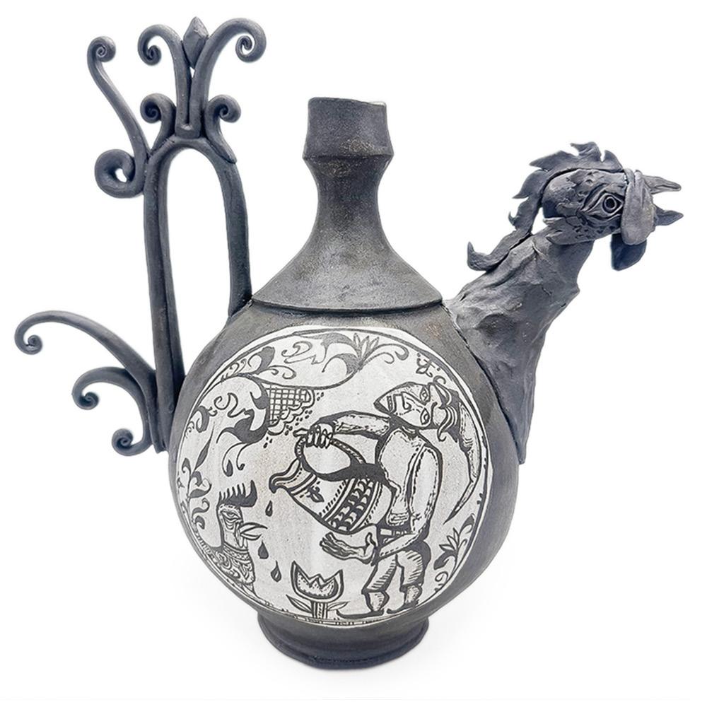 Misty Gamble’s ceramic practice is inspired by the human figure and its infinite capacity for communication. This focus is rooted in her childhood, where she was immersed in her father’s world of puppetry and performing arts—an influence that continues to shape her sculptural narrative. In 1998 she received a historic invitation to be the first American to perform at the International Puppet Festival in Tehran, a testament to her lifelong